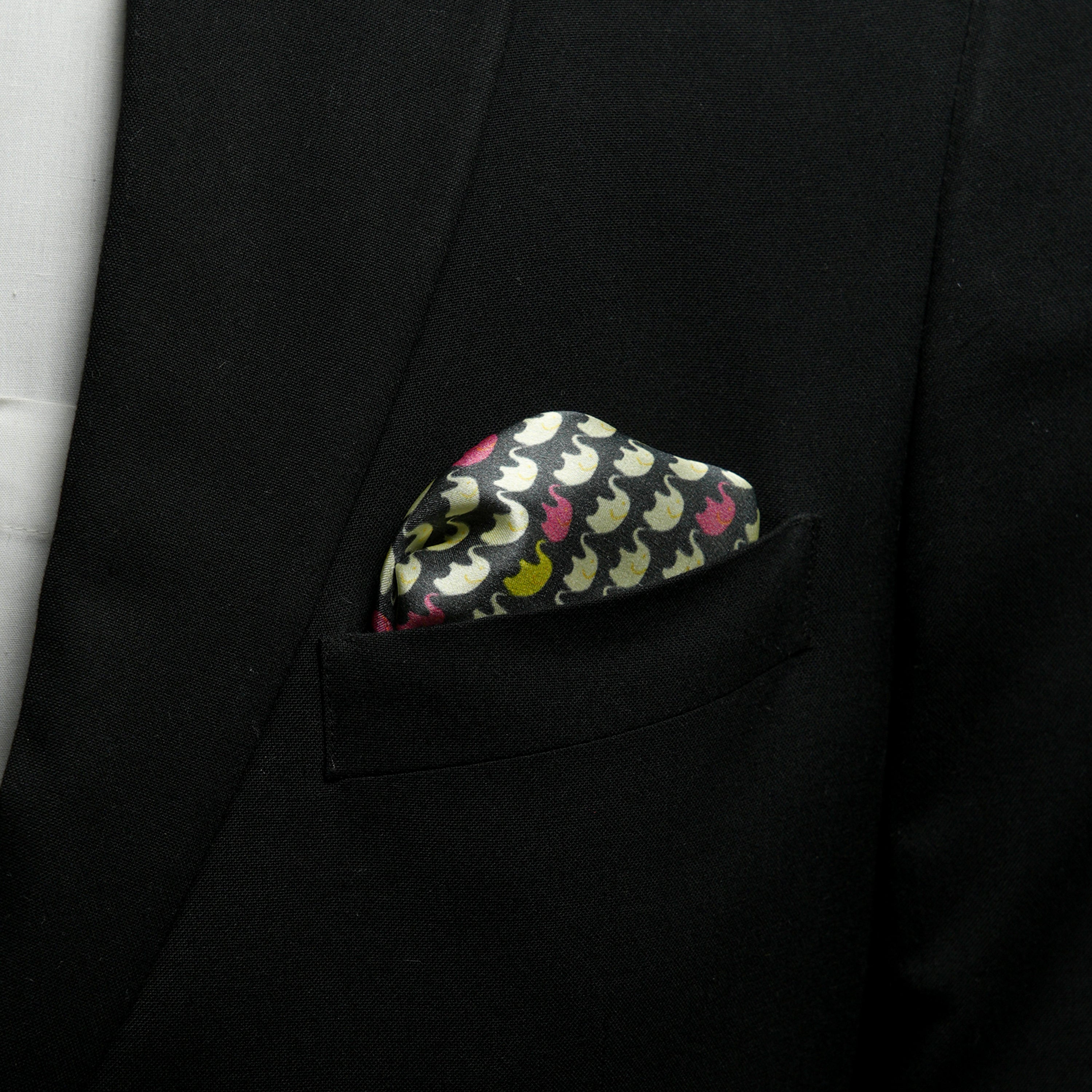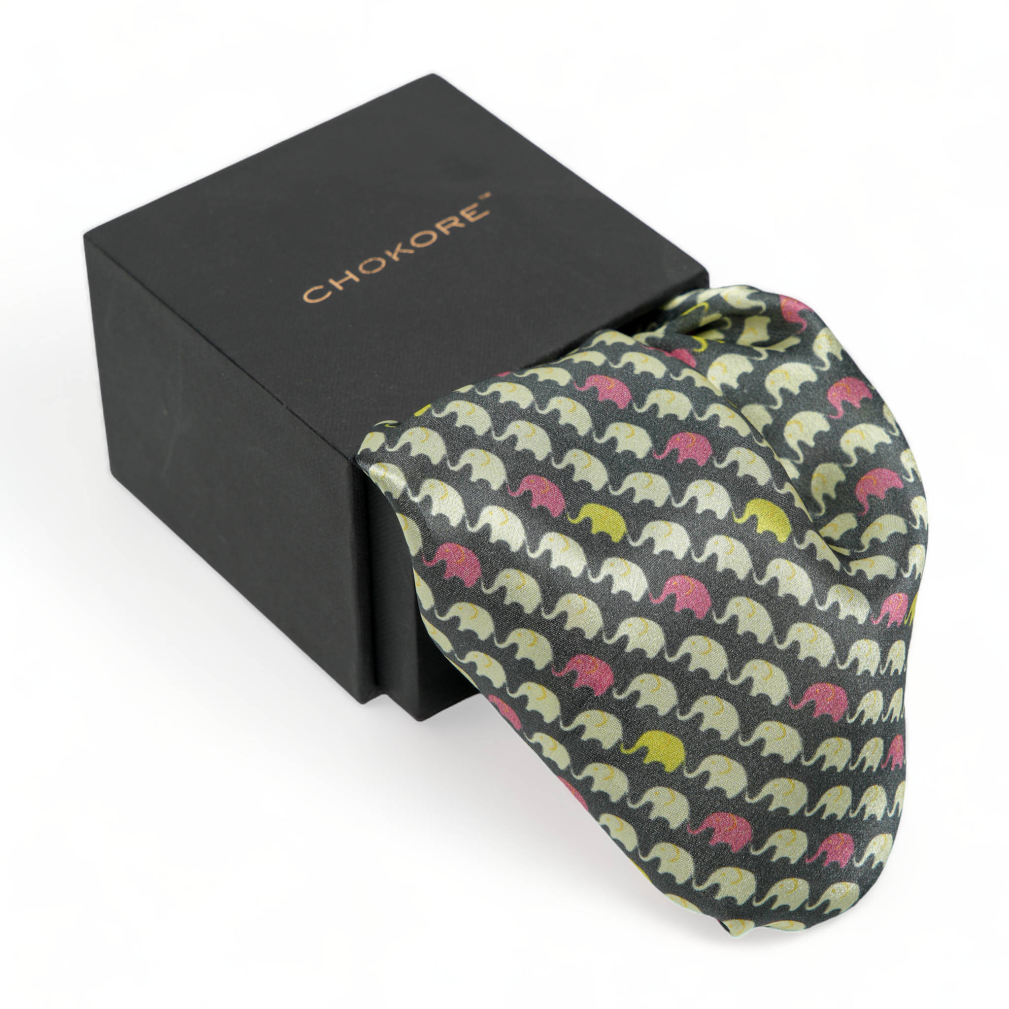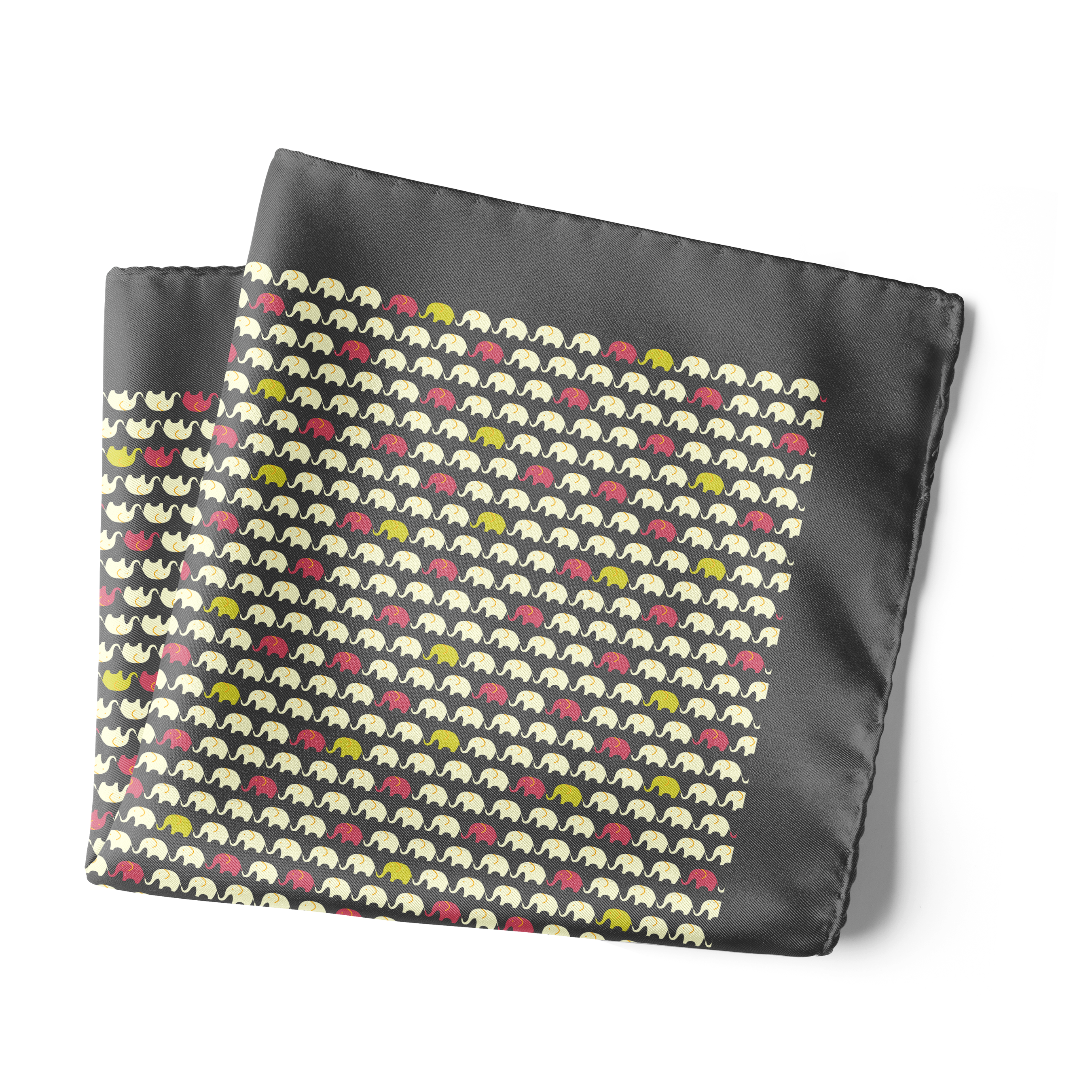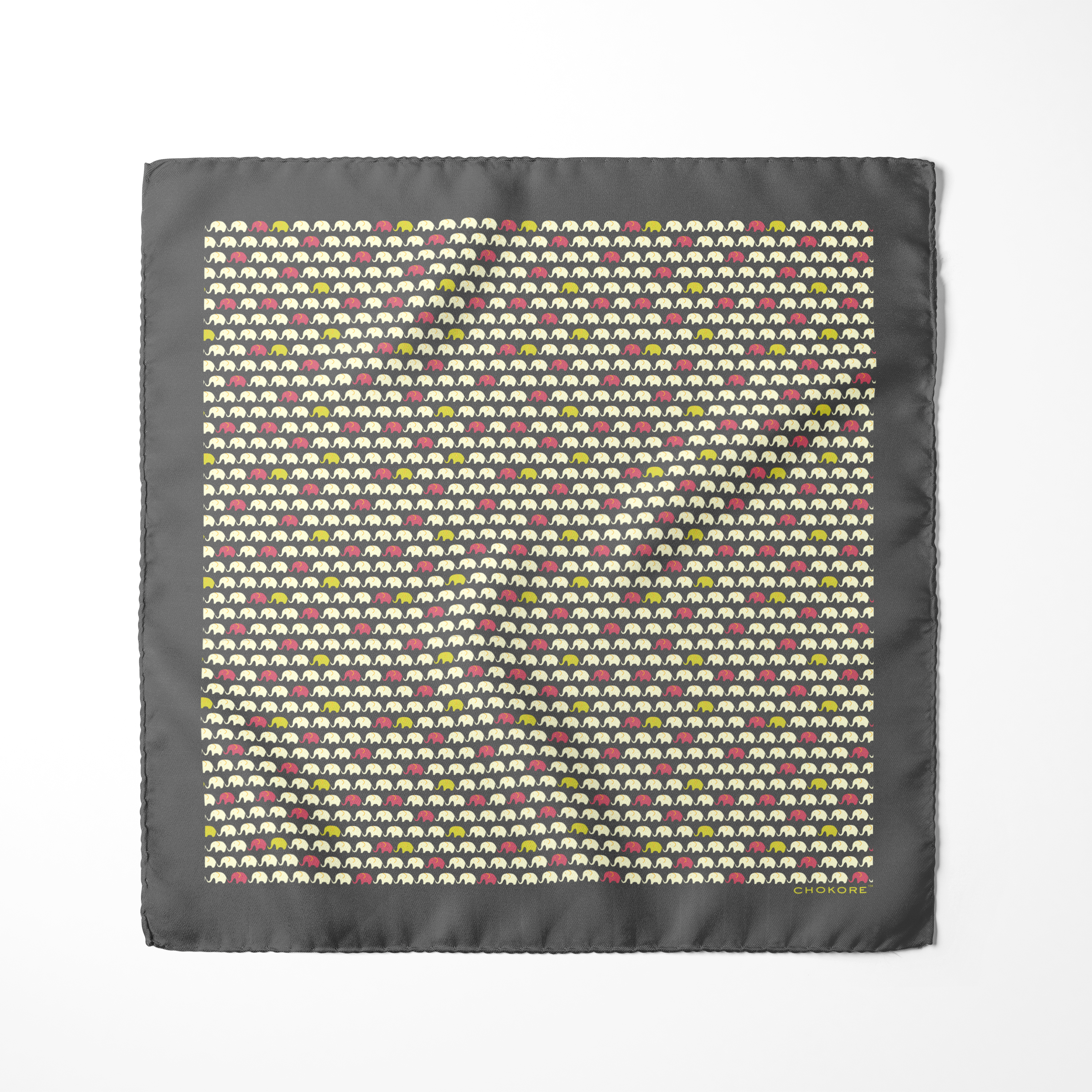 Chokore Dark Gray Baby Elephants Silk Pocket Square - Wildlife Range