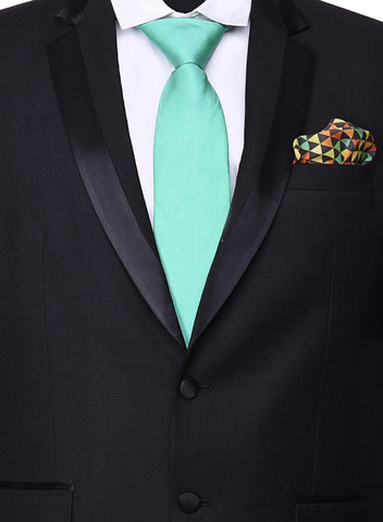 Rich, pure silk, solid tie. Paired with a multicolored printed pure silk pocket square. For the complete look. Looks great with a Black or Grey Jacket. Suitable for formalwear, casualwear and occassions. Elegant packaging for gifting.