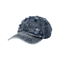 Introducing our Distressed Denim Cap – the epitome of laid-back cool! This cap rocks a casual, lived-in look with distressed denim for that effortlessly rugged vibe. Perfect for those days when you want your style to say "effortless chic." Embrace the relaxed, worn-in feel, stay comfortably on-trend, and let this cap become your go-to for an easygoing edge. It's not just a cap; it's a fashion statement that's comfortably distressed and always in style!