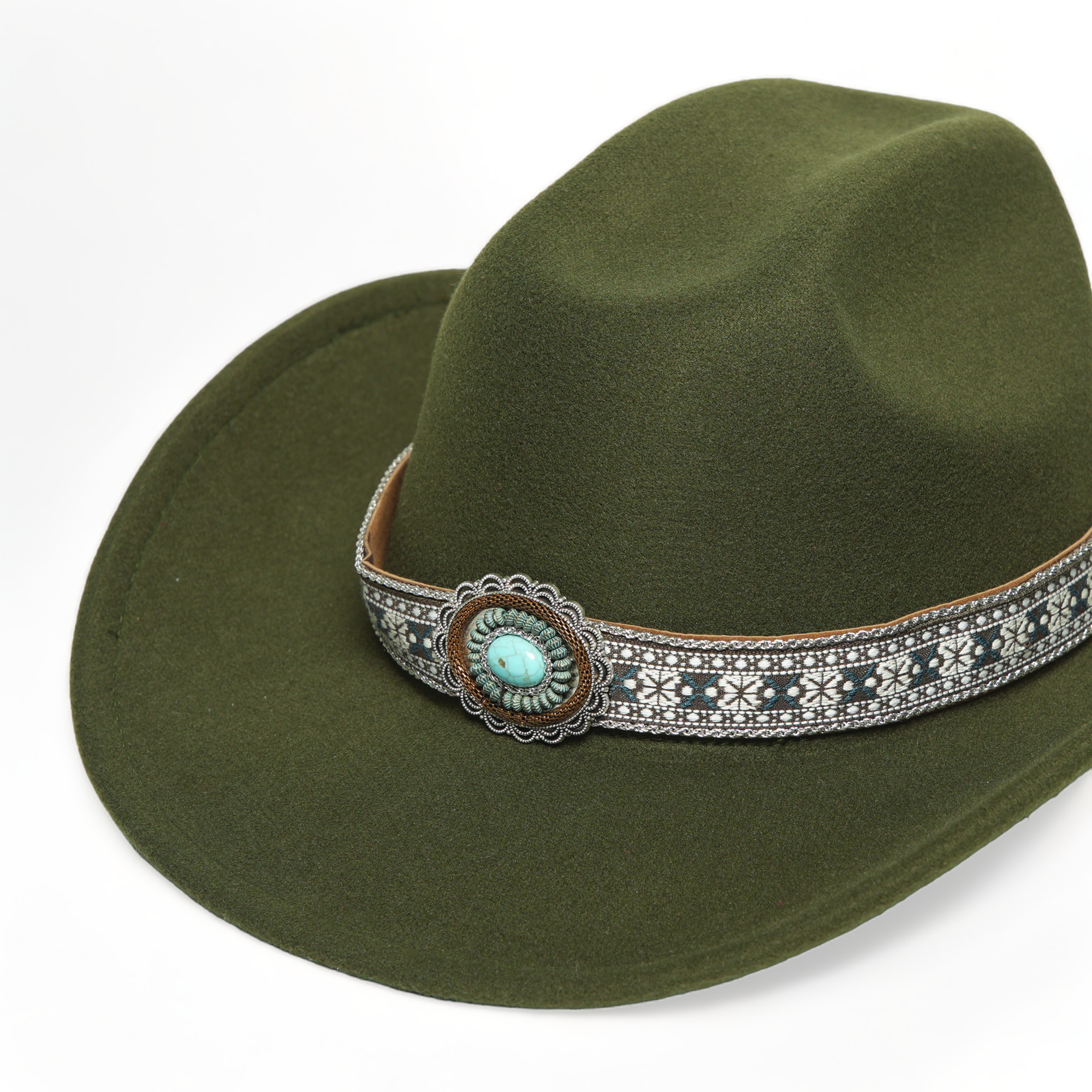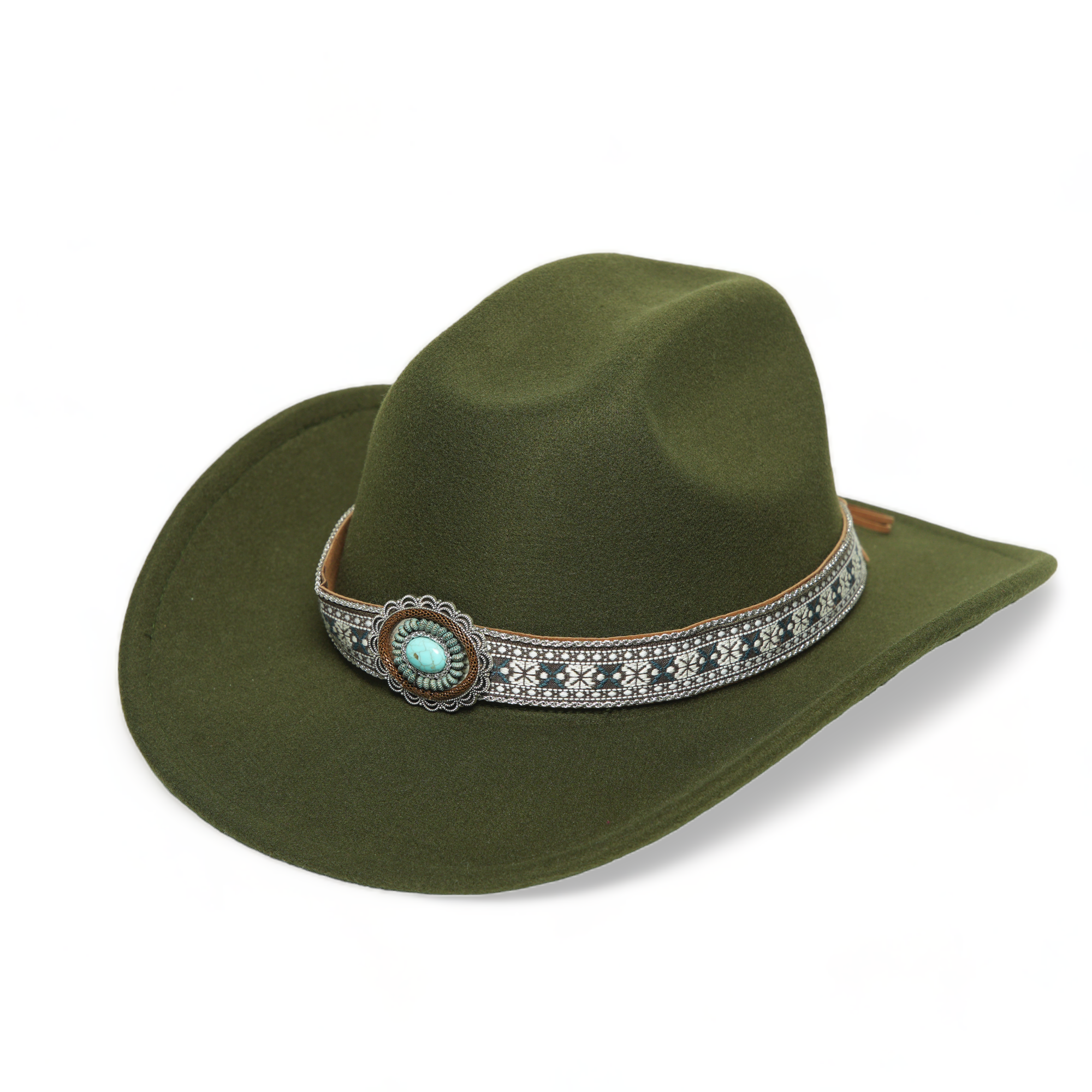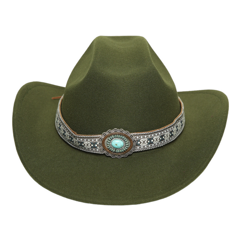 Chokore Ethnic Tibetan Cowboy Hat (Forest Green)
