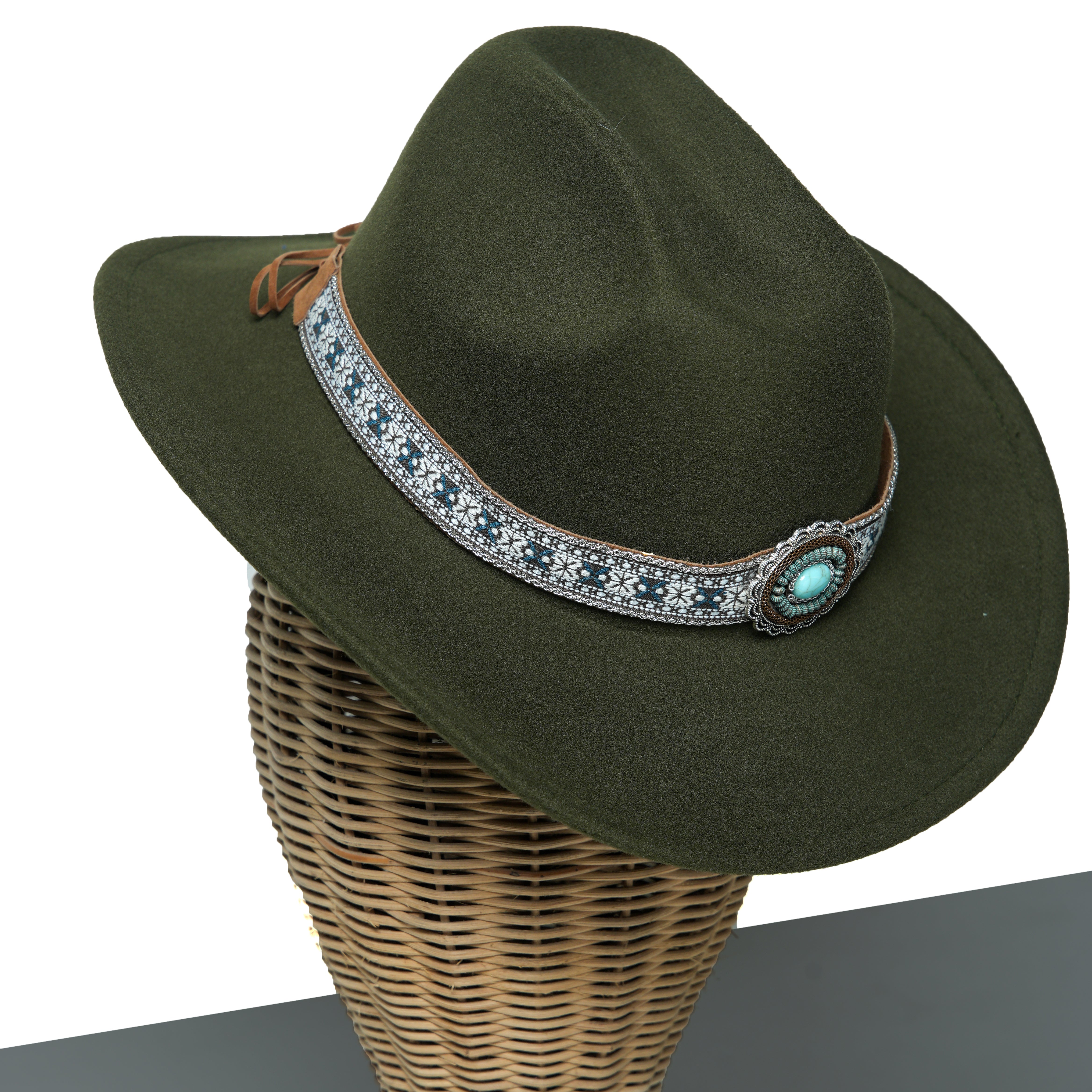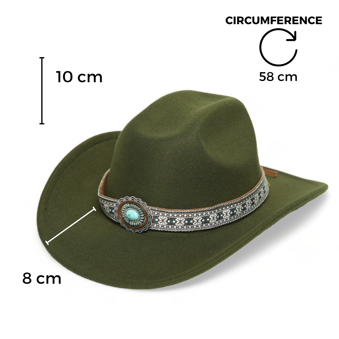- DESIGN & PRACTICALITY: Cowboy hat with stylish tibetan belt, designed for practicality, with a wide brim that shields you from scorching heat. Comes with a string inside for better fitting.