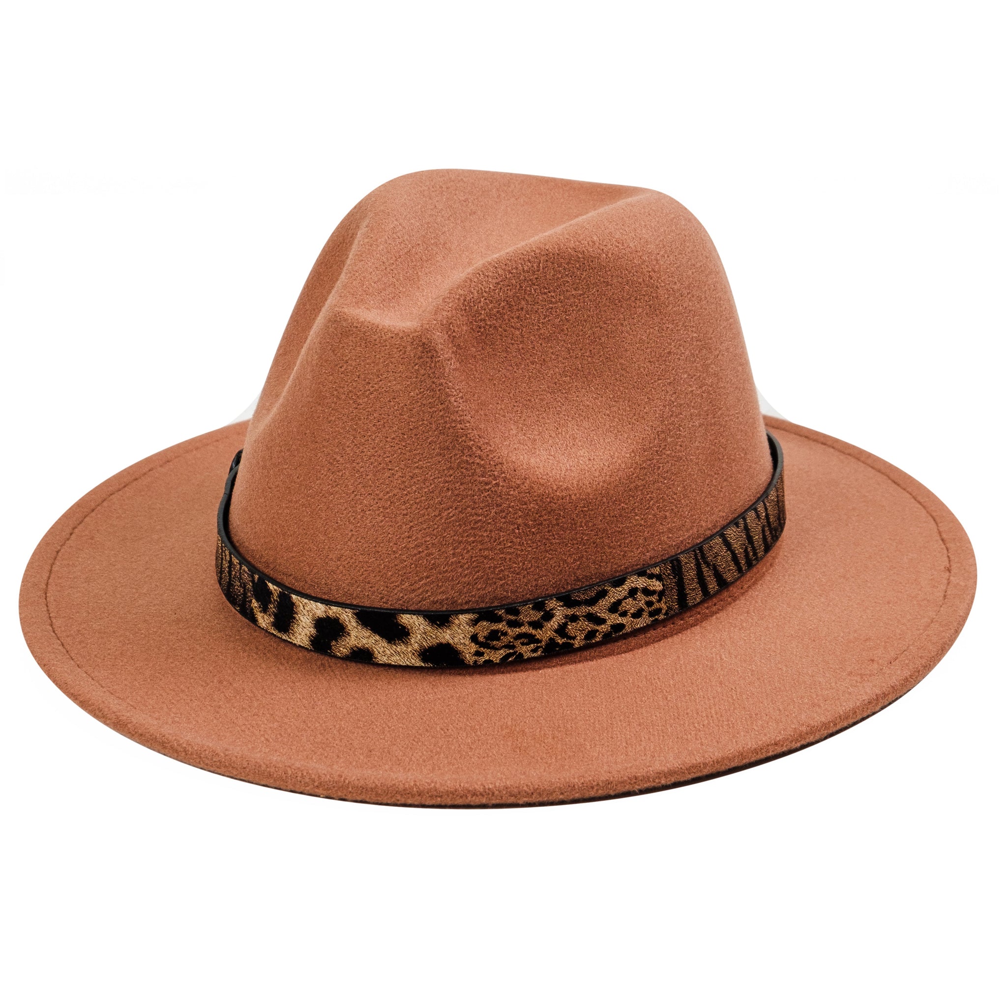 - PRACTICALITY: Fedora hat with leopard belt, designed for practicality, with a wide brim that shields you from scorching heat. Comes with a string inside for better fitting.
