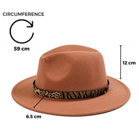 "Introducing our ferociously fabulous Fedora Hat with Leopard belt! With a wide brim that's and a leopard-printed belt, this hat screams fierce and fabulous. It's perfect for those who dare to be wild and walk on the wild side of fashion. Crafted with impeccable style and quality, this hat will make heads turn and jaws drop. So embrace your inner fashion enthusiast and unleash your untamed style with our Leopard Belt Fedora Hat.