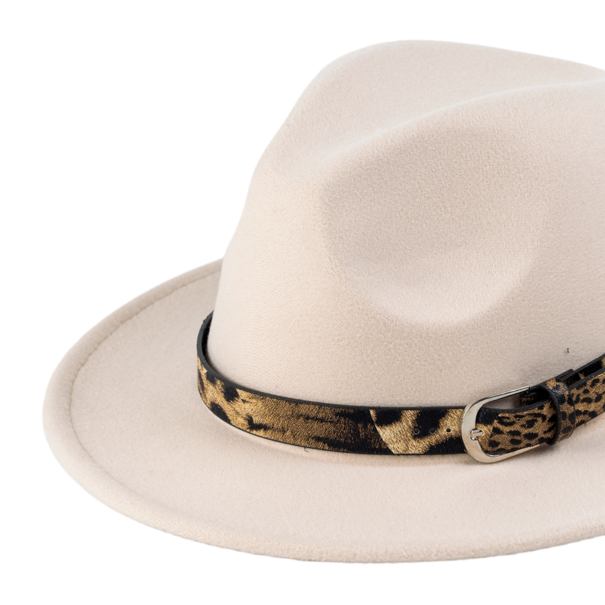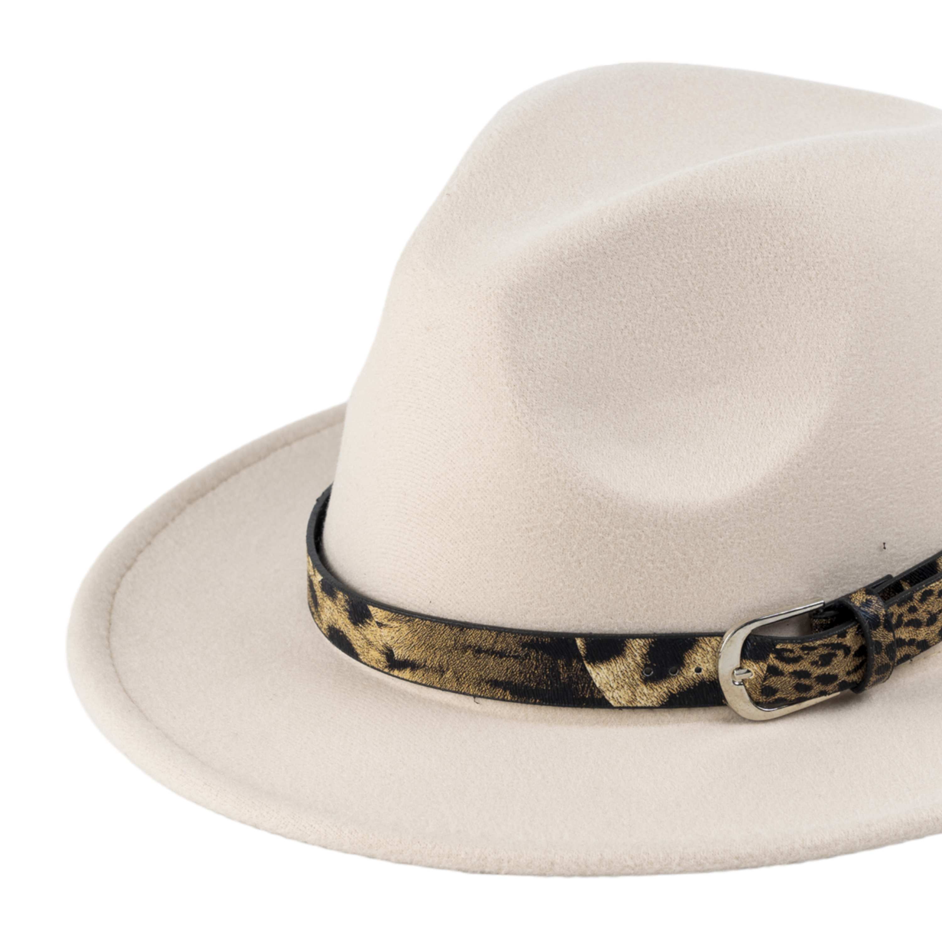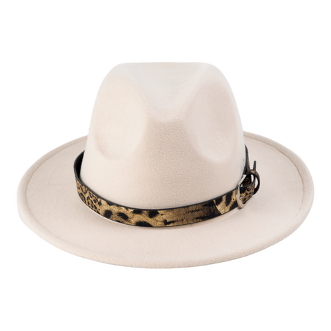 Chokore Fedora Hat with Leopard Belt (Beige)