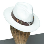 This hat is a true symbol of rugged Western charm and untamed style. The classic Fedora silhouette is elevated by the addition of an oxhead belt that captures the essence of the wild frontier. Whether you're navigating urban landscapes or stepping out for a night on the town, our Fedora with its oxhead band is the perfect accessory to complement your Western-inspired ensemble.