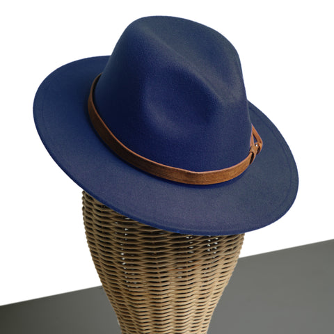 Chokore Fedora Hat with Vegan Leather Belt (Enamel Blue)