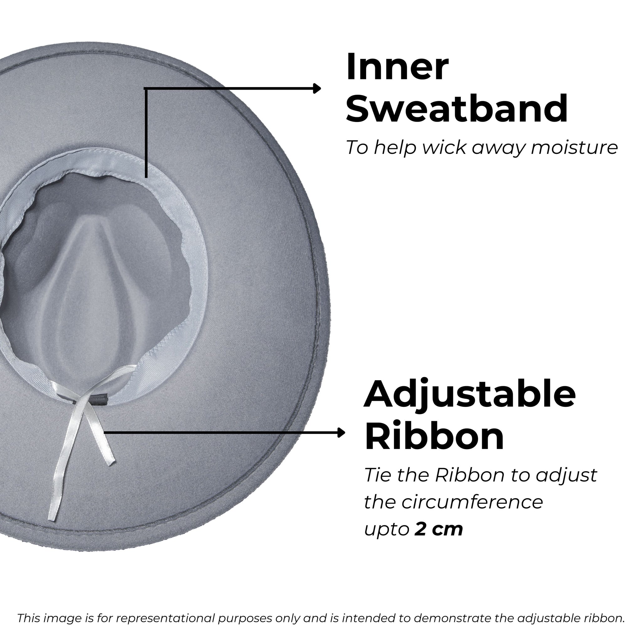 • PRACTICALITY: Fedora hat with vegan leather belt, designed for practicality, with a wide brim that shields you from scorching heat. Comes with a string inside for better fitting.