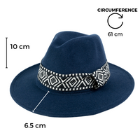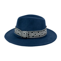 Chokore Fedora Hat with Zig-Zag Belt (Navy Blue)