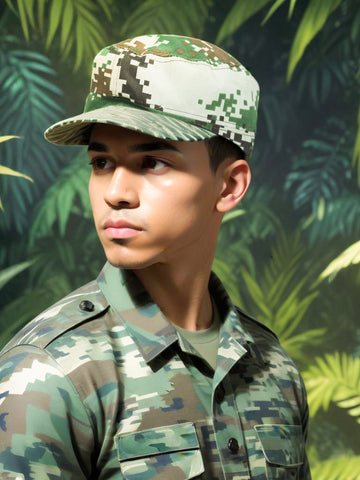 Introducing our Flat Top Camouflage Cap – the ultimate blend of rugged style and urban flair for the modern adventurer! Crafted with durable materials, this cap features a flat top design adorned with a classic camouflage print. Whether you're exploring the great outdoors or navigating through city streets, this cap offers both functionality and fashion. With its adjustable strap, it ensures a comfortable and secure fit for all-day wear. Get ready to blend in with your surroundings while making a bold style statement with our Flat Top Camouflage Cap!