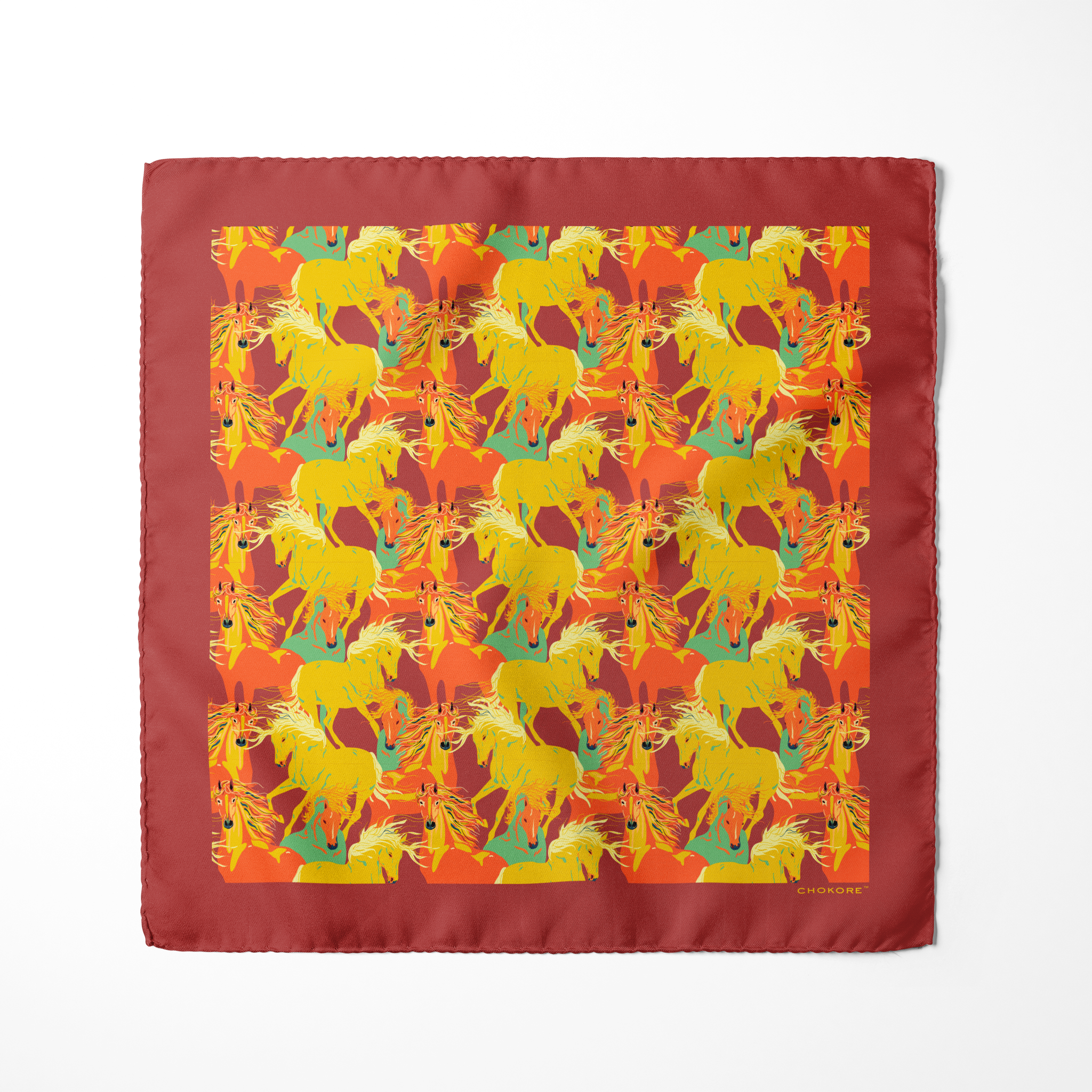 Chokore Galloping Horses Multicolor Silk Pocket Square - Wildlife Range