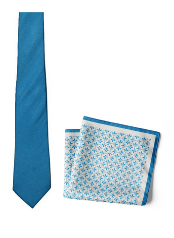Chokore Jaali Good (Blue) - Pocket Square & Light Blue Silk Tie - Solids line