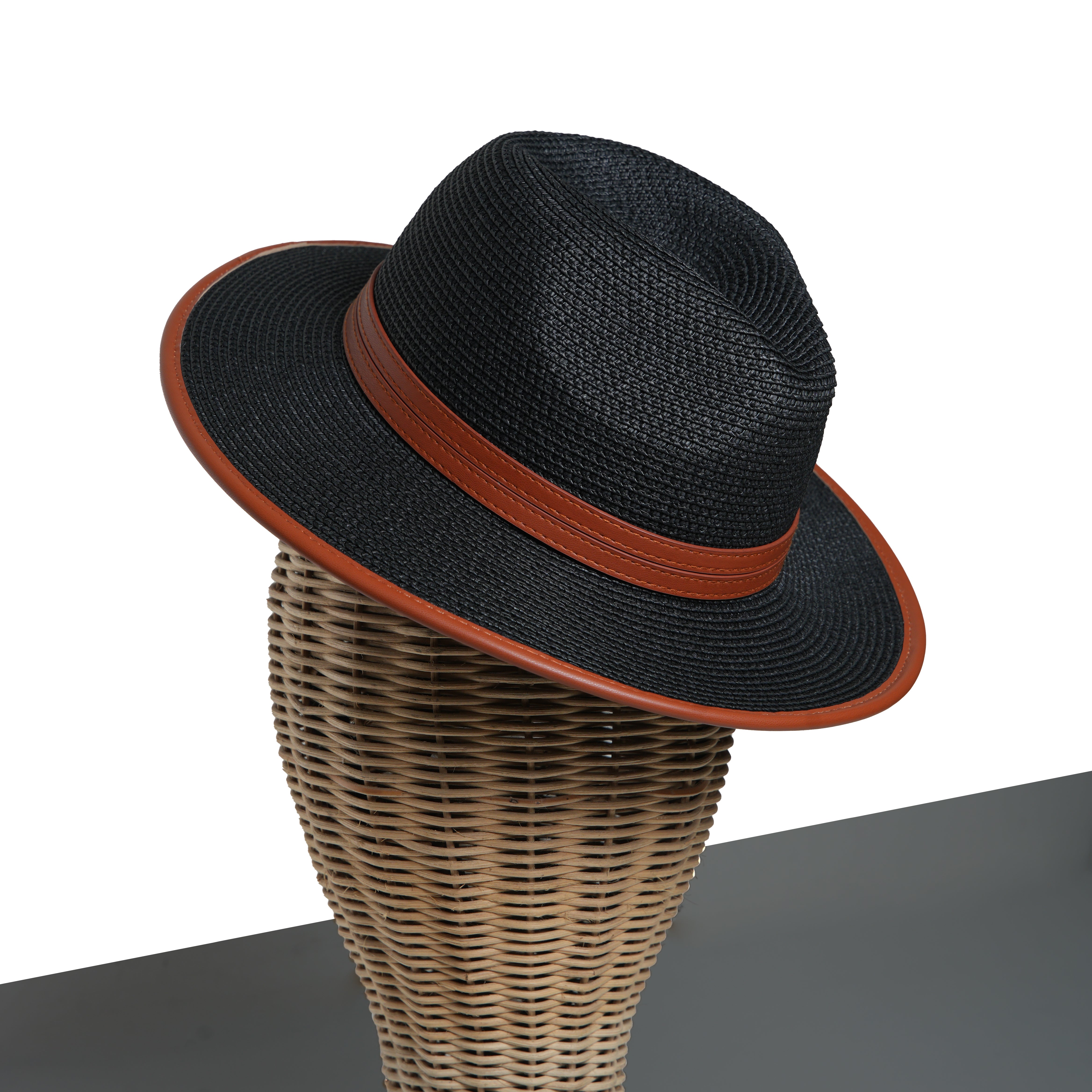 Chokore Minimal Straw Fedora Hat (Black)