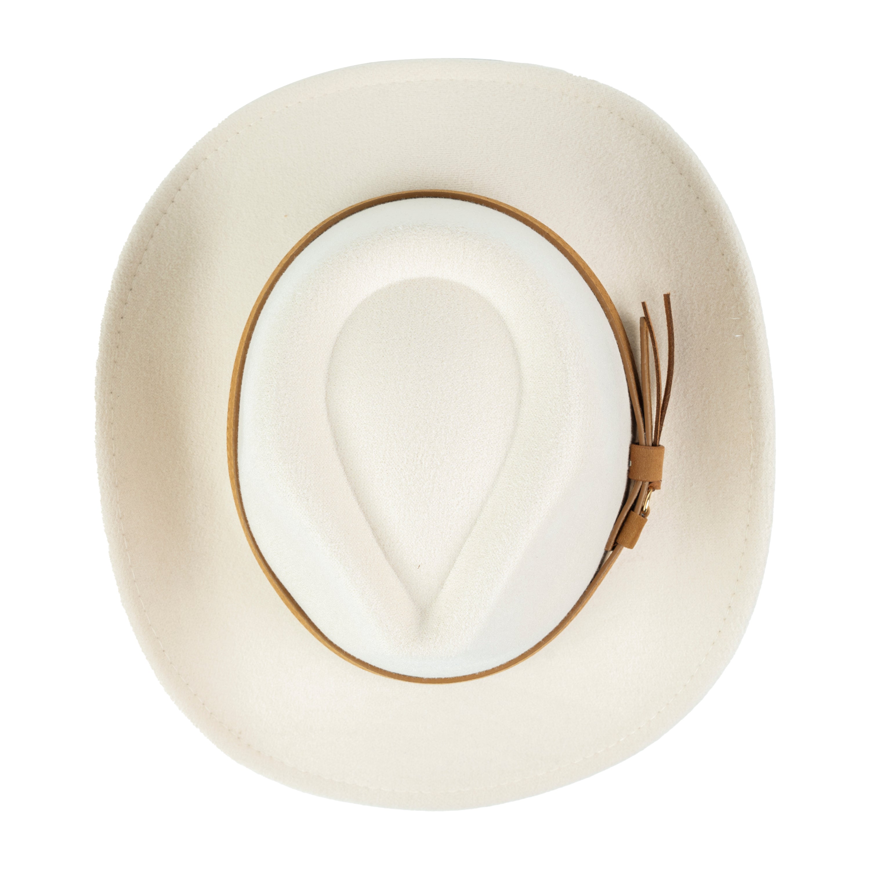 Chokore Pinched Cowboy Hat with PU Leather Belt (Off White)
