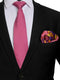 Chokore Pink color silk tie & Magenta & Orange Pure Silk Pocket Square set