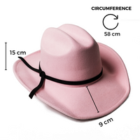 "Saddle up in style with our pink cowgirl hat! This hat is merely a fashion statement that features a playful twist on traditional cowgirl gear. The subtle pink hue adds a pop of fun and sass to any rodeo or country-themed event. Crafted with high-quality materials, it’s both durable and comfortable for long days of wrangling cattle or tearing up the dance floor. The wide brim provides just the right amount of shade for those sunny days on the ranch, and being the perfect size, it will be securely in place during all your line-dancing shenanigans. So don’t wait, grab your cowgirl hat, and unleash your inner rodeo diva! "