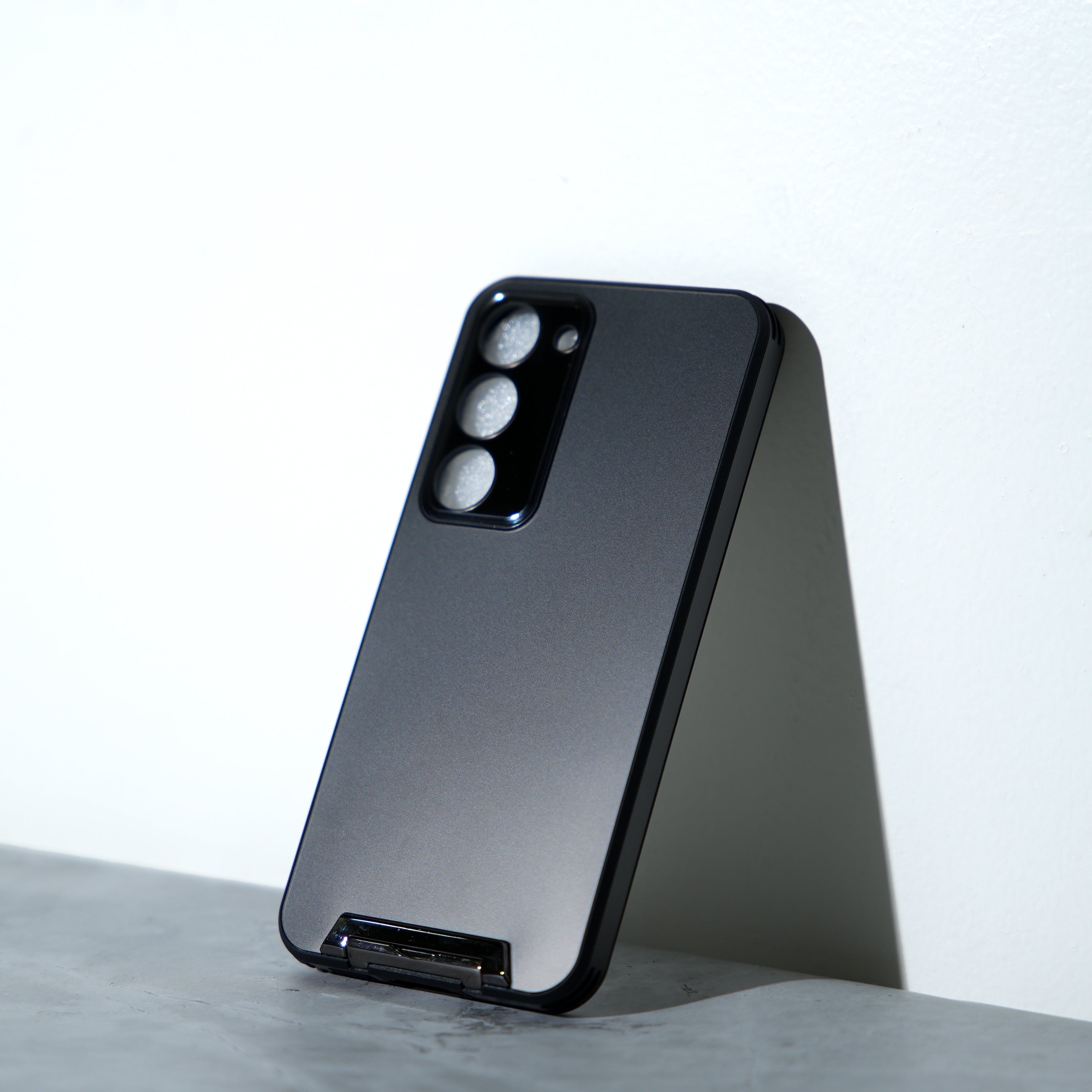 Enhance your Samsung S23 Ultra with the Chokore Premium Phone Cover with Hidden Stand in black. This cover combines robust protection with a discreet stand, ensuring your device is always ready for any task.