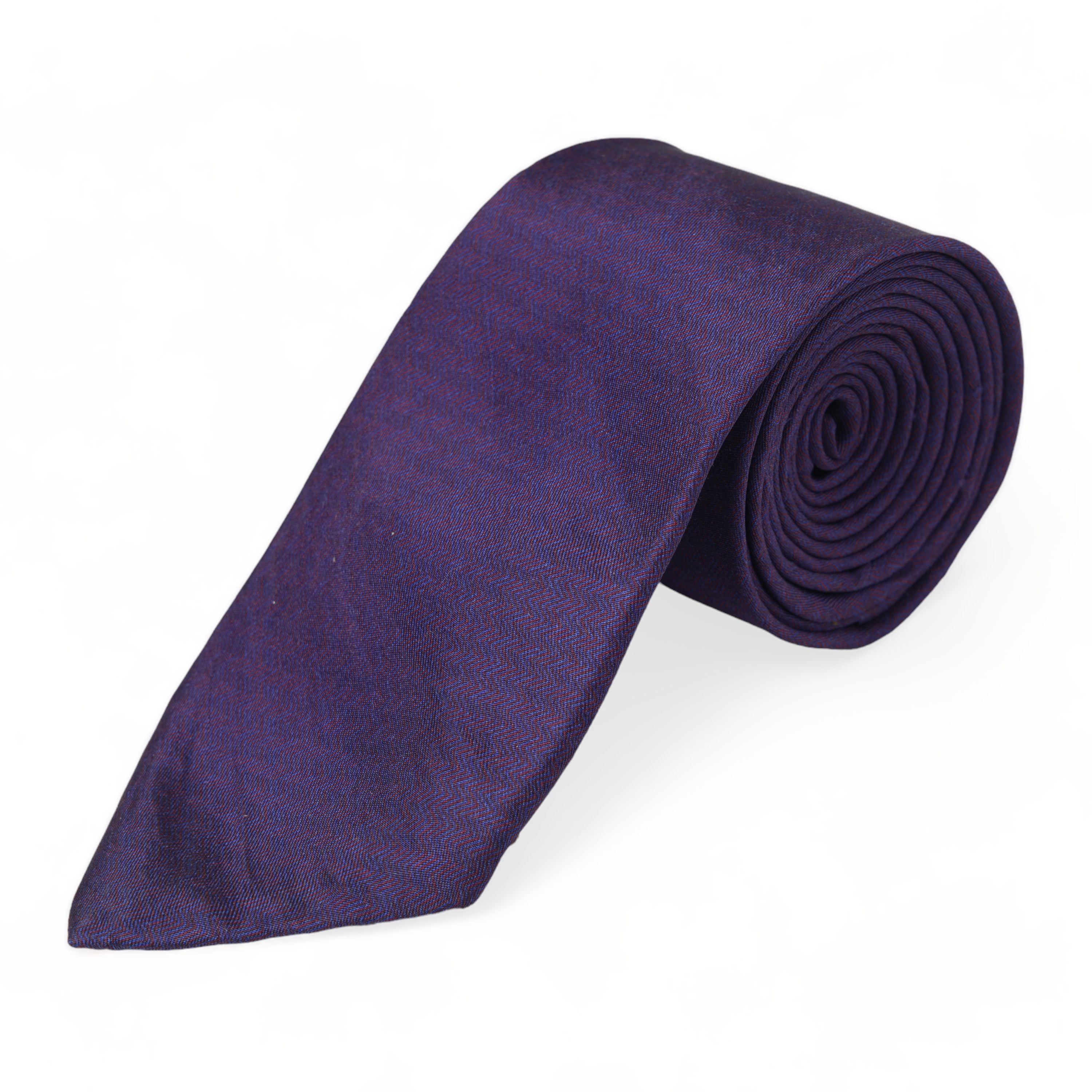 This deep purple color tie is specially crafted in twill silk with a wavy detailed design, to add elegance and grace to your personality. Pair it with any plain or printed light-coloured shirt and see how it elevates your style.