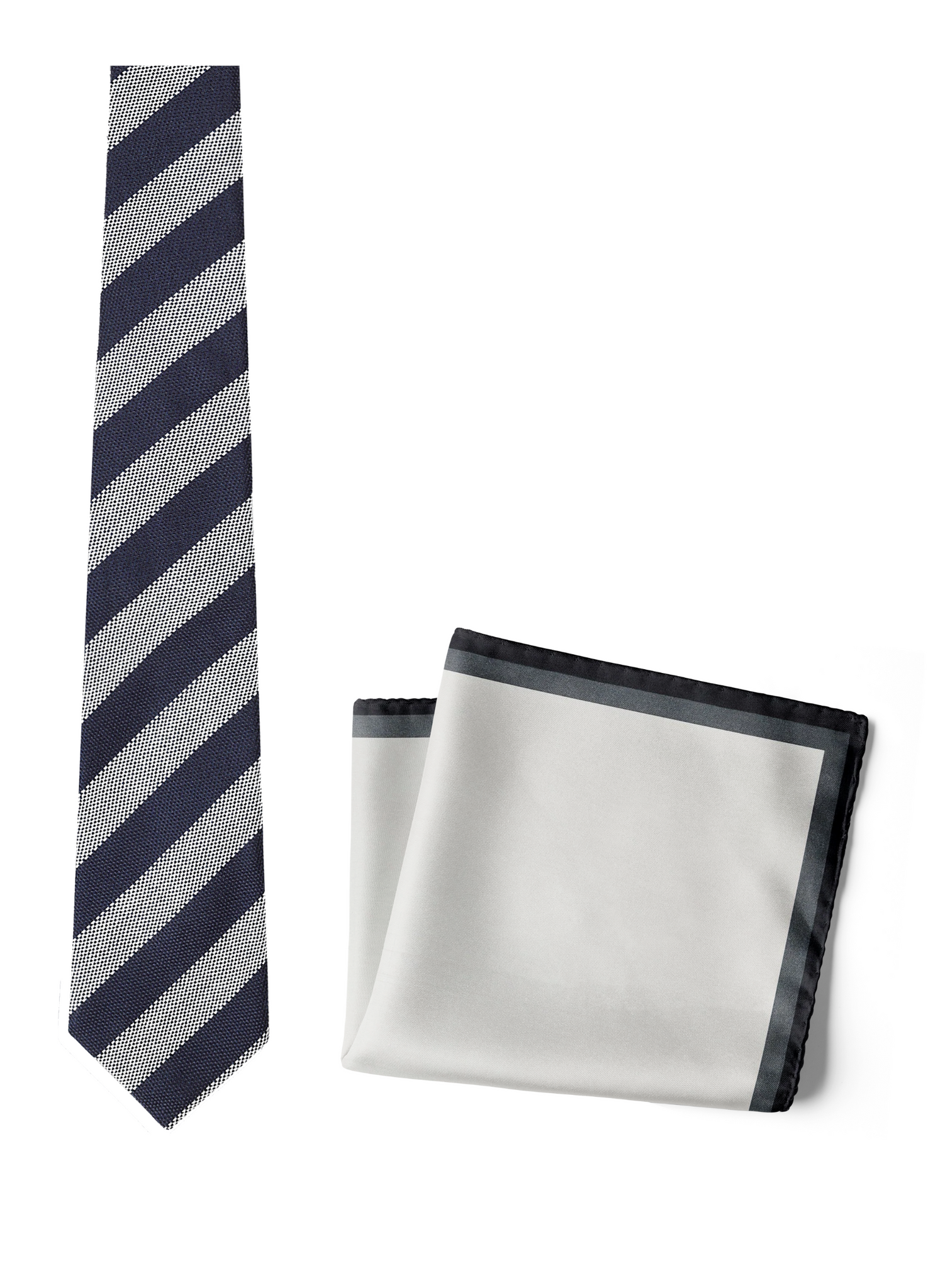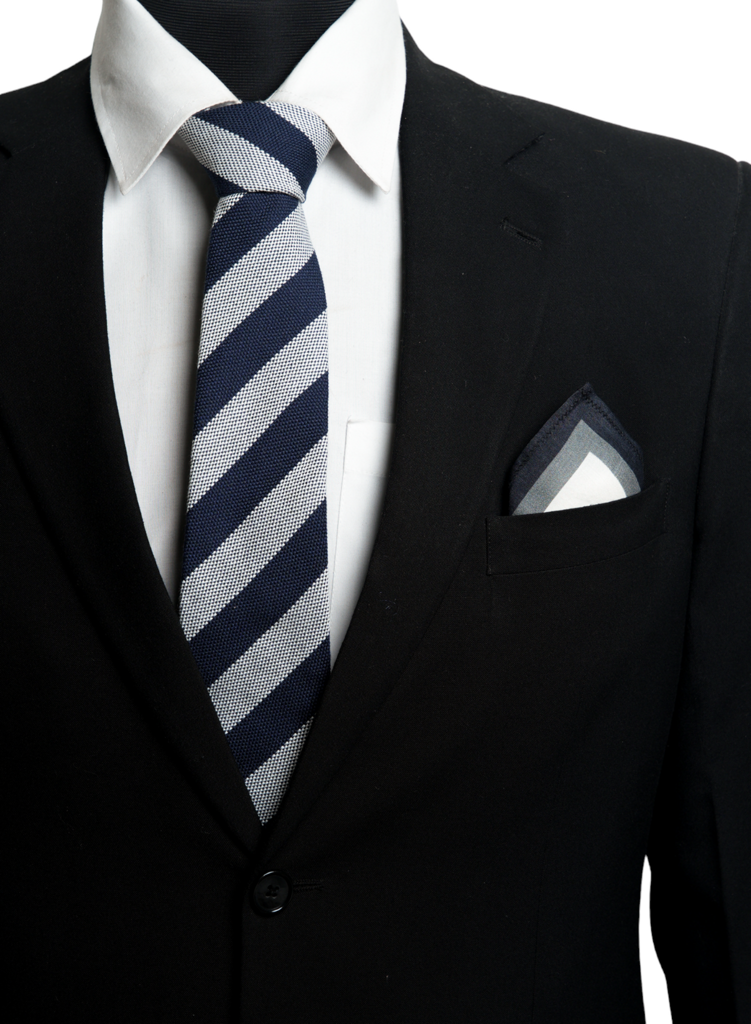 - Package contains: "1 x Stripes Italian Handcrafted Necktie (Navy & Silver), 1 x Quartz Pocket Square"