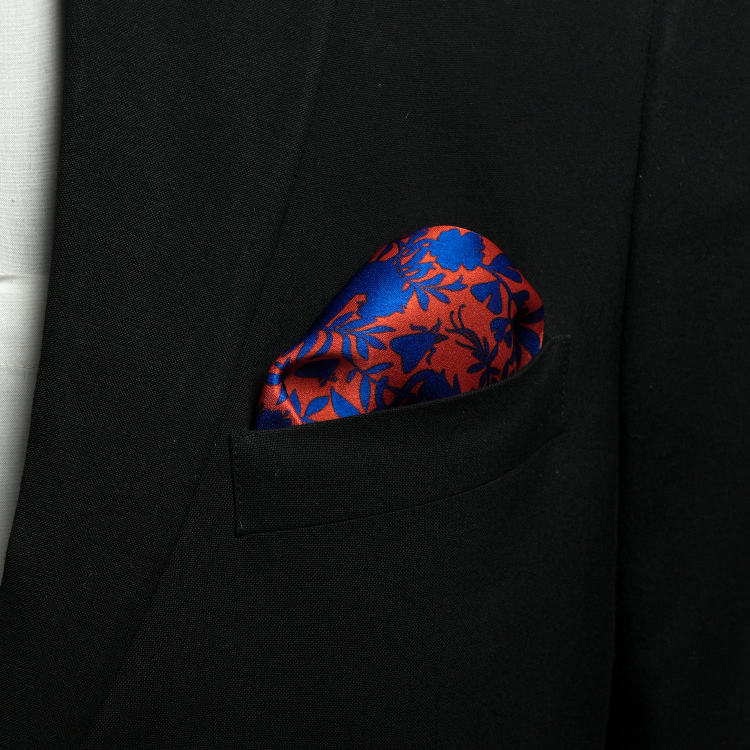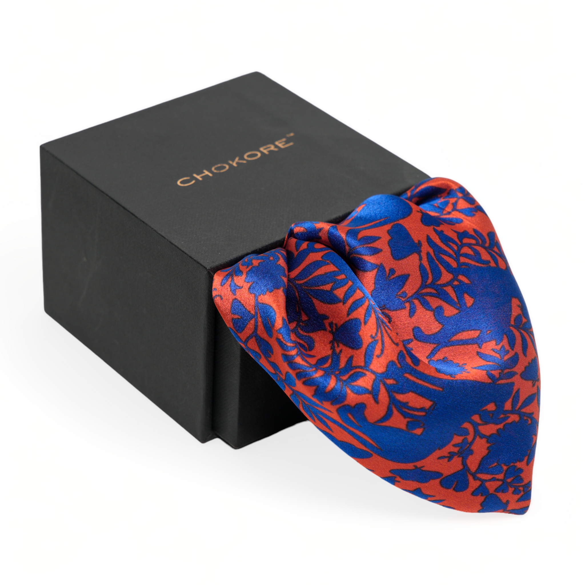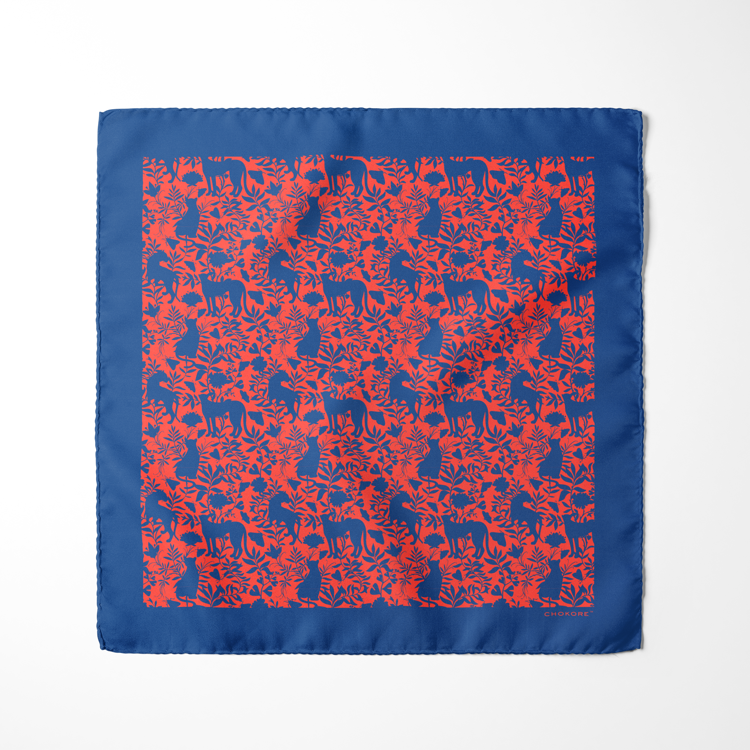 Chokore Red & Blue Animal print Silk Pocket Square - Wildlife Range