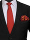 Rich, Pure Satin Silk, Red color solid tie. Paired with a Burgundy floral print pure silk pocket square inspired by Indian designs. For the complete look. Great with a Black or Grey Jacket. Suitable for formalwear, casualwear and occassions. Elegant packaging for gifting.