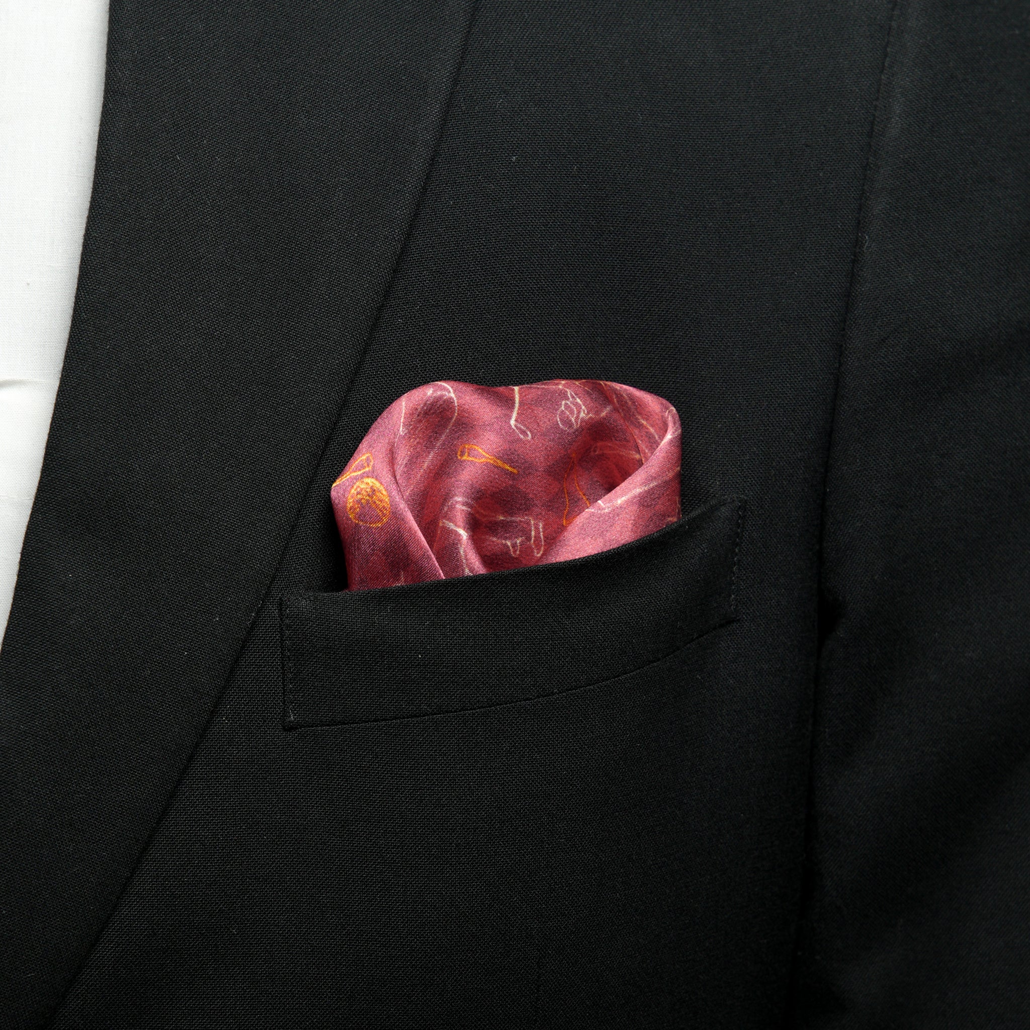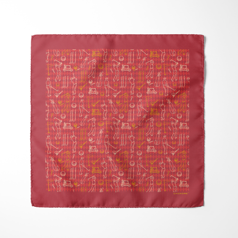 Chokore Red Golf Print Silk Pocket Square - Sporty Silks Range