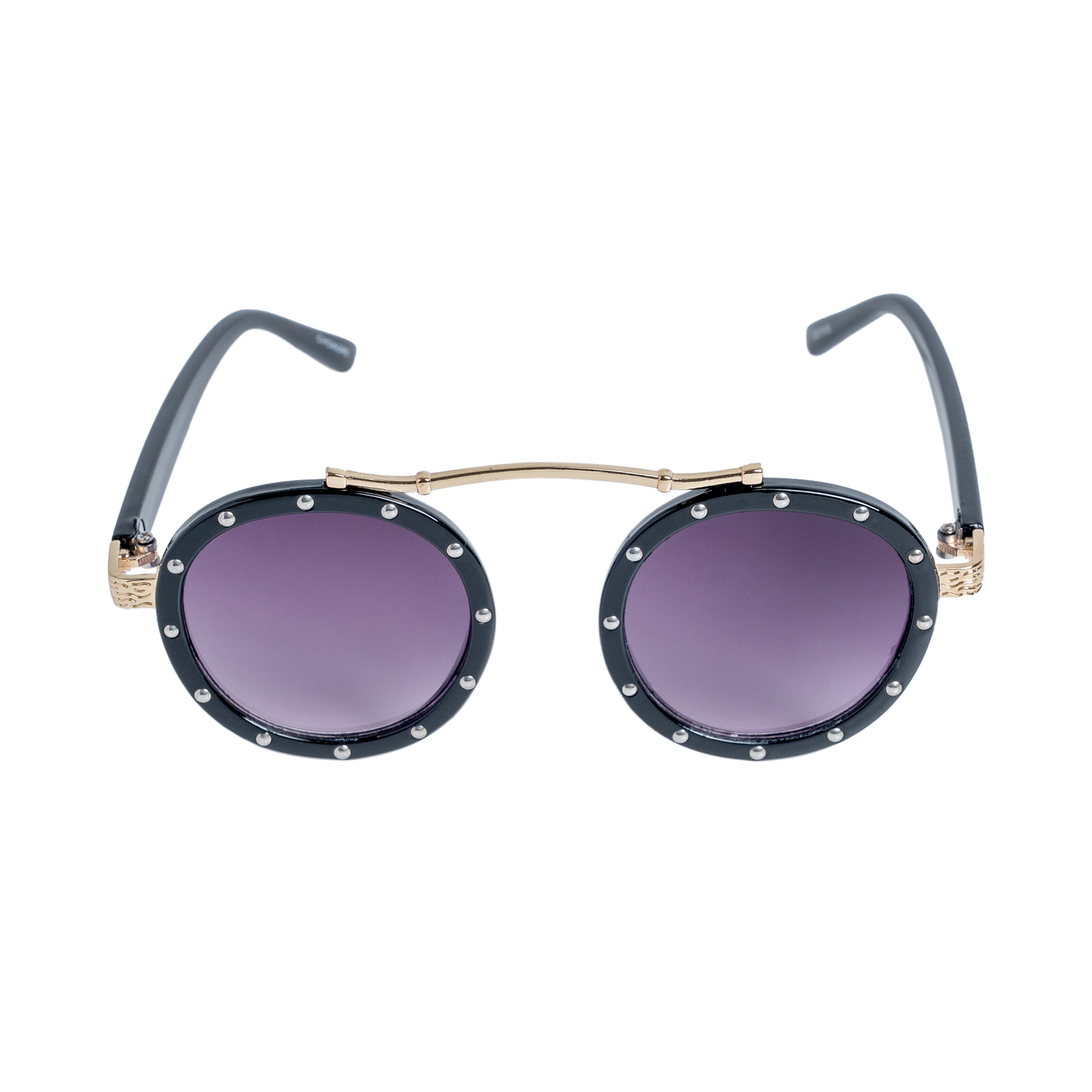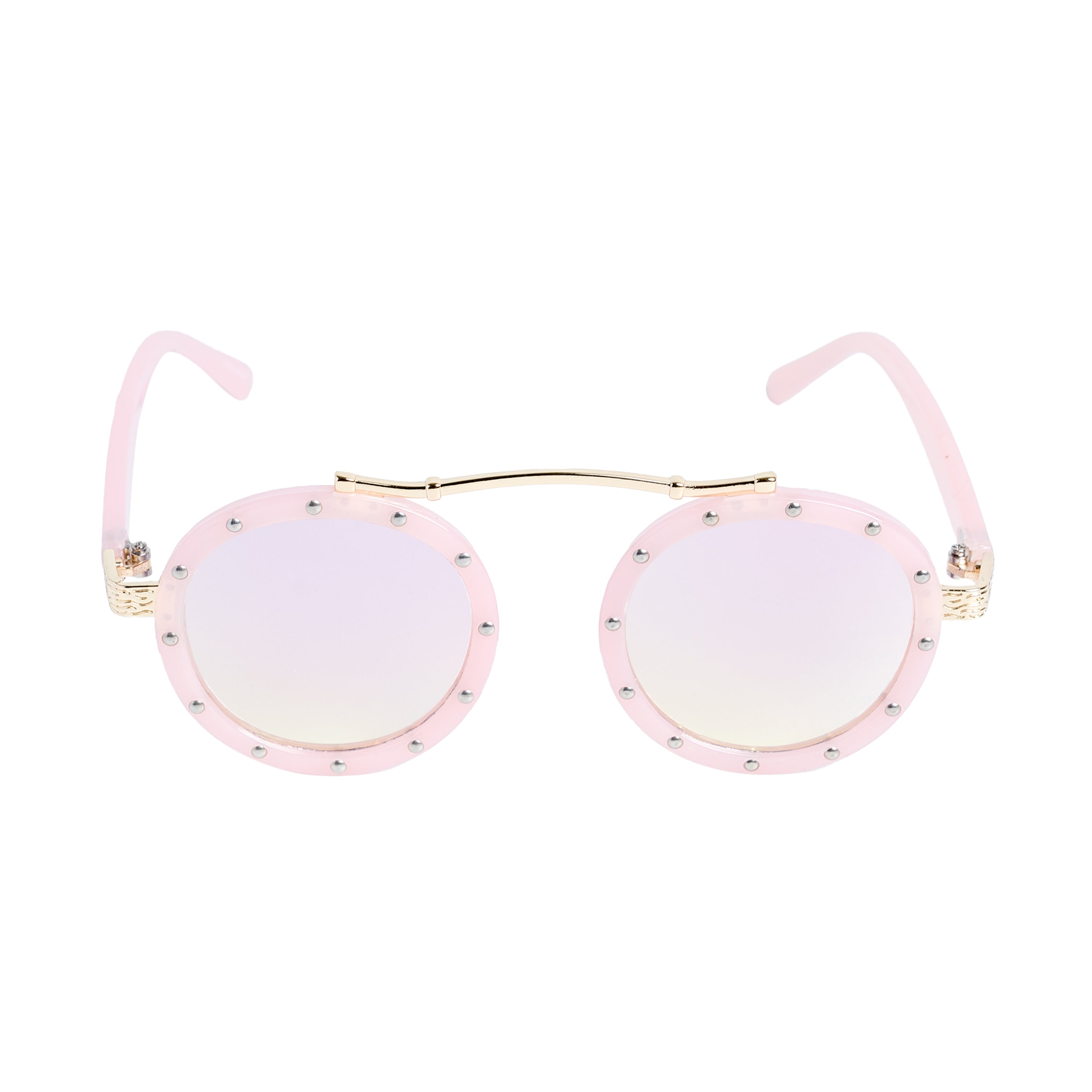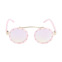 Crafted with durable materials, these sunglasses are built to withstand active play. So let your kids show off their fashion-forward side with these round rivet sunglasses—the perfect combination of style and sun protection!"
