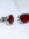 Chokore Round Silver Cufflinks (Burgundy)