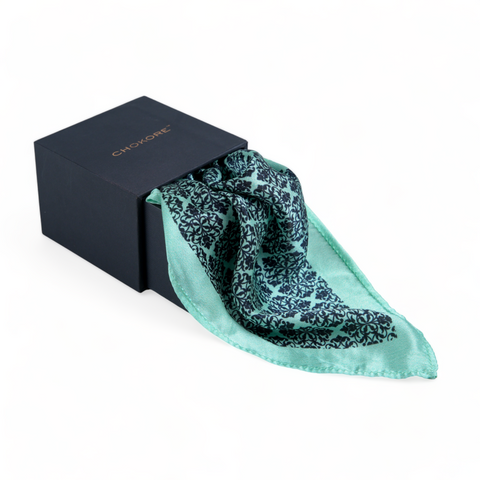 Chokore Sea Green & Black Silk Pocket Square - Indian at Heart Range