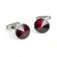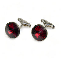 Rich Burgundy Crystal Silver Brass Cufflinks – Wedding & Celebration Wear