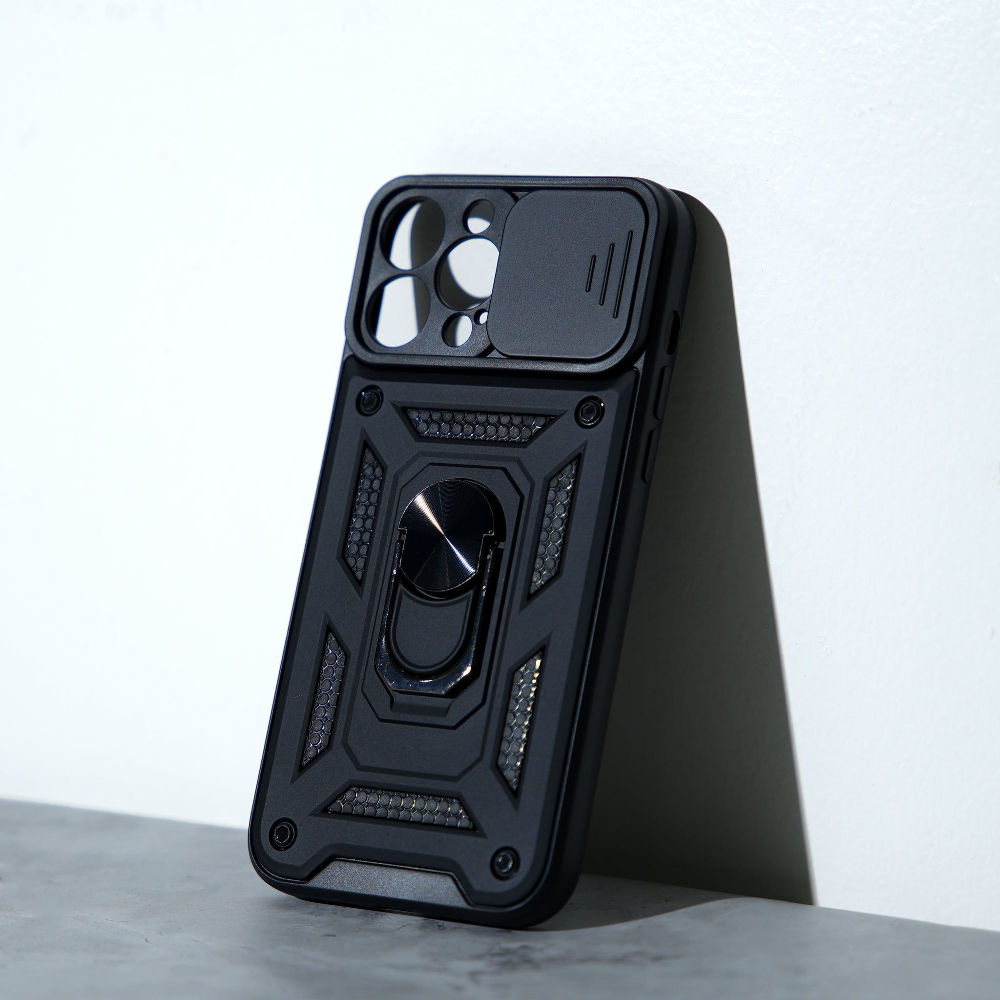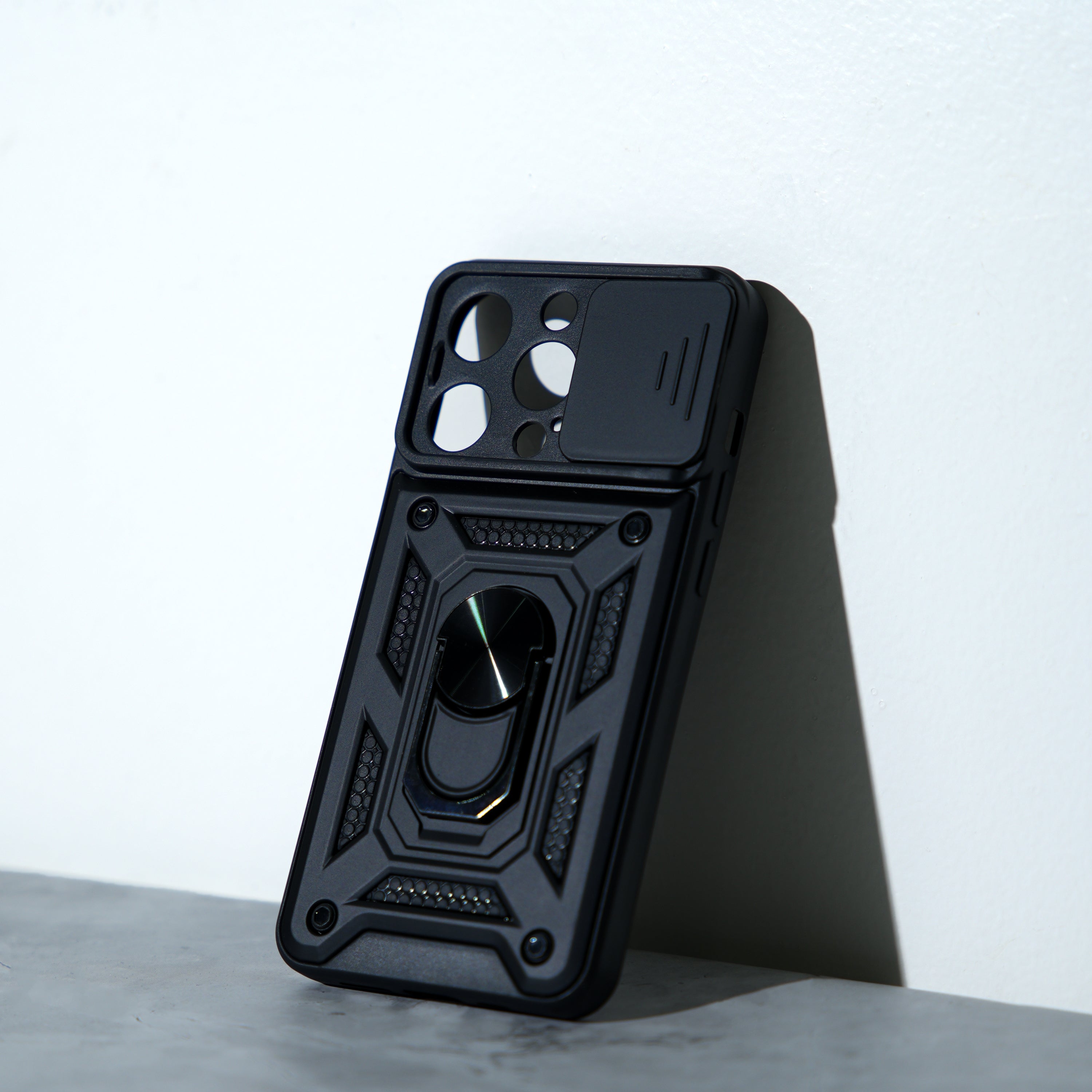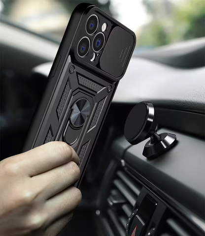 Chokore Sliding Metal Ring Stand Cover with Camera Lens Protector (Black)