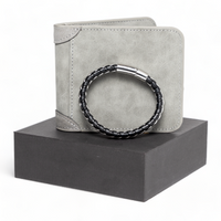 Introducing our suave and savvy gift set! Elevate your style quotient with a sleek wallet and a dashing bracelet. Our wallet is the perfect blend of functionality and elegance, keeping your essentials secure in style. Meanwhile, our trendy bracelet adds a touch of finesse to your wrist game. Whether it's a gift for a fashion-forward friend or a treat for yourself, this dynamic duo is designed to make a bold statement and turn heads wherever you go! Level up your fashion game and step into the world of sophistication!