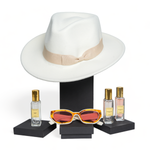 Elevate your style to the next level with our Fedora hat, sunglasses, and perfumes combo!