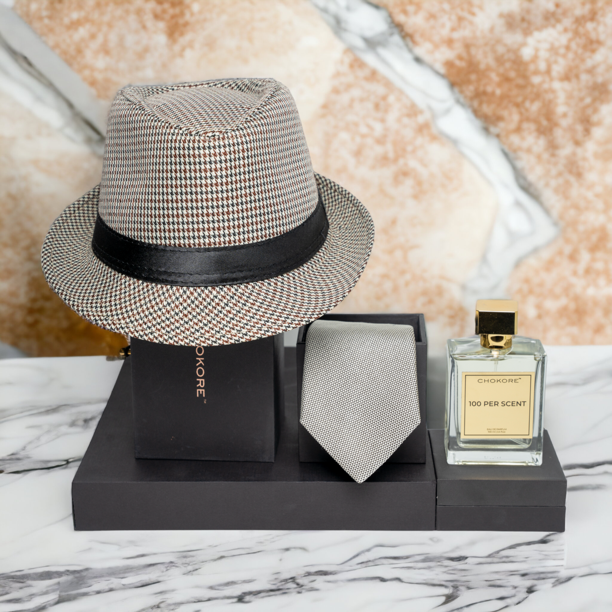 Chokore Special 3-in-1 Gift Set for Him (Fedora Hat, Necktie, & 100 Per Scent Perfume)