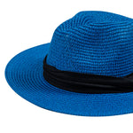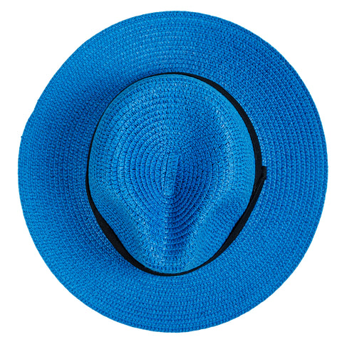 Chokore Straw Fedora Hat with Wide Brim (Blue)