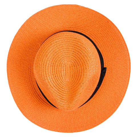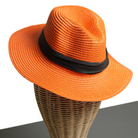 Chokore Straw Fedora Hat with Wide Brim (Orange)