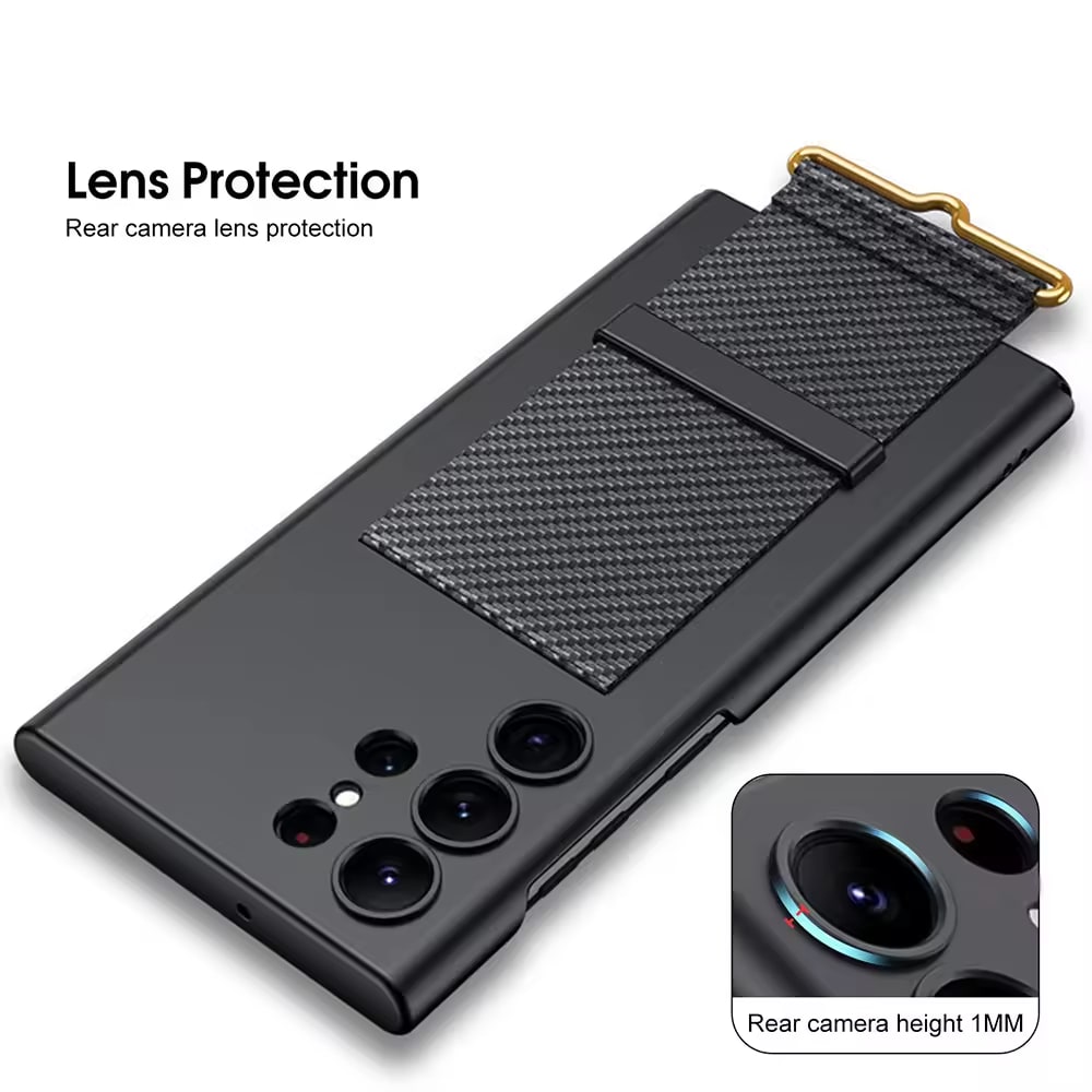 "Keep your Samsung S23 protected and stylish with the Chokore Thin Wrist Strap Holder Protective Phone Case in black. This slim case offers excellent protection against daily wear and tear, while the integrated wrist strap holder provides added convenience and security, allowing you to carry your phone effortlessly."