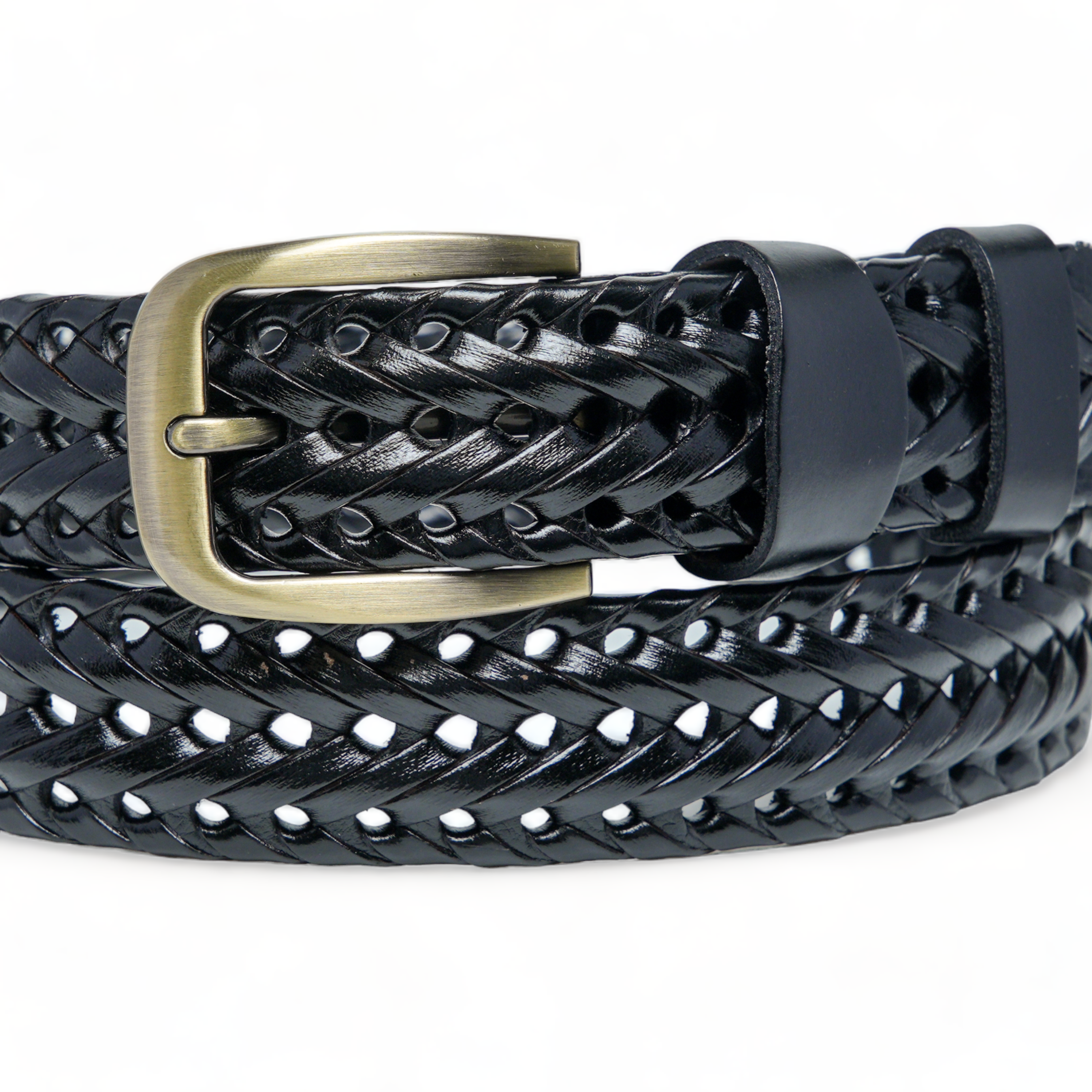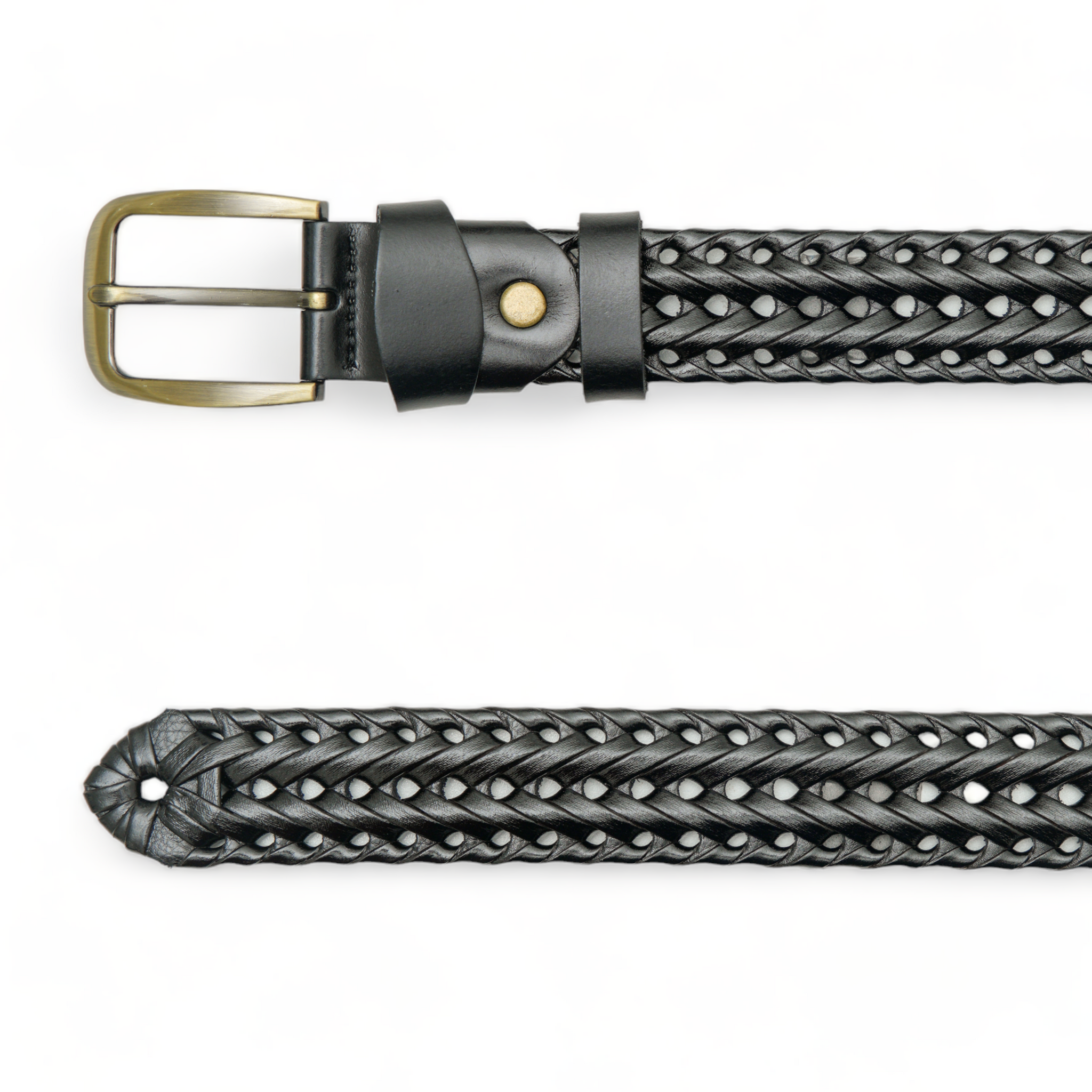 Chokore Unisex Braided Genuine Leather Belt (Black)