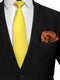 Rich, Pure Satin Silk, Yellow color silk solid tie. Paired with a Burgundy & Lemon Green Silk Pocket Square from Indian At Heart designs. For the complete look. Great with a Black, Brown or Grey Jacket. Suitable for formalwear, casualwear and occassions. Elegant packaging for gifting.