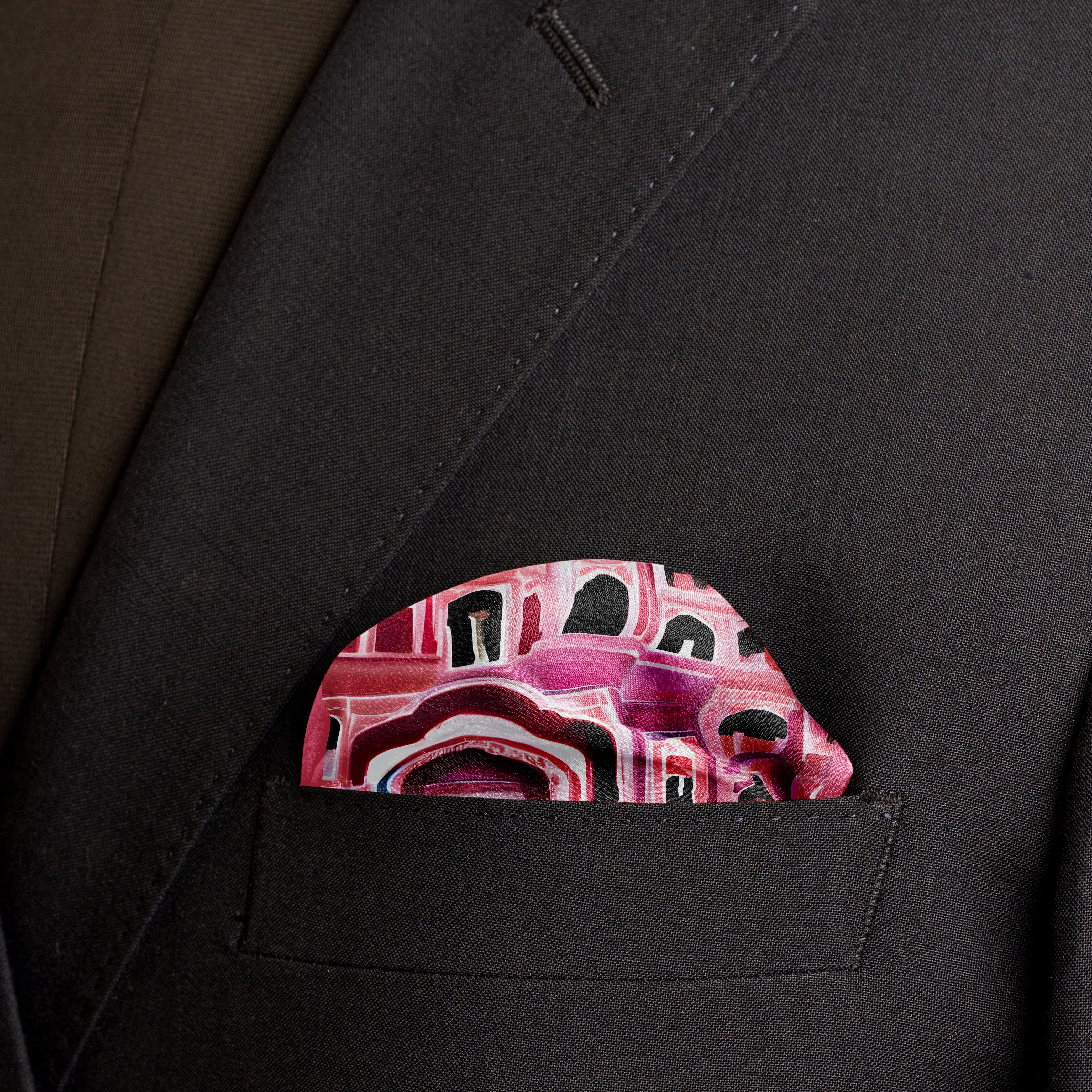 This Jaipur-inspired pocket square is a regal masterpiece. The print of the city's architecture is breathtaking. It's a wearable tribute to the cultural richness of Jaipur.