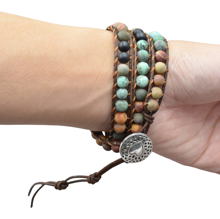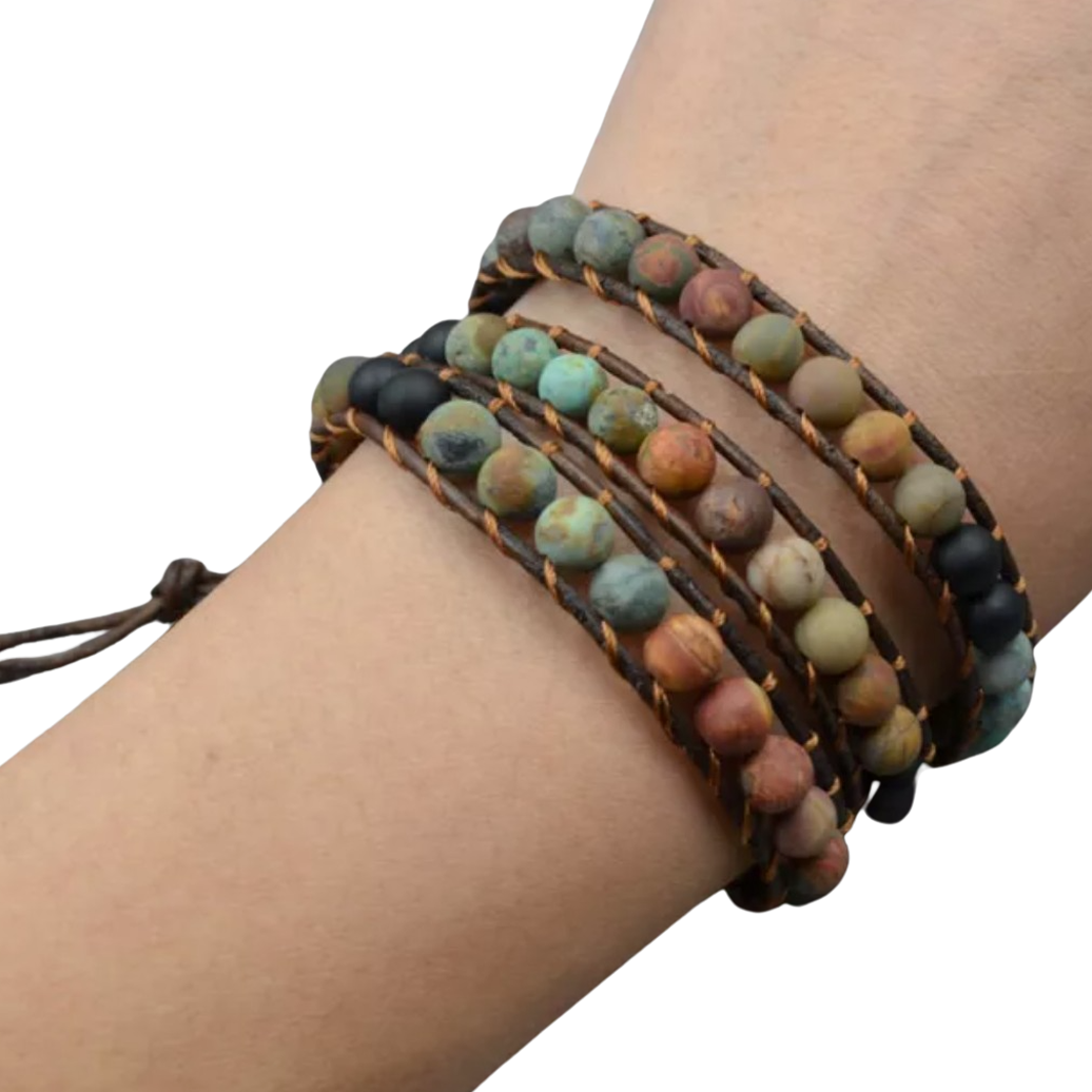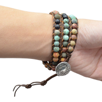 Natural Agate Gemstone beaded multi-layer Bracelet jewelry, Unisex