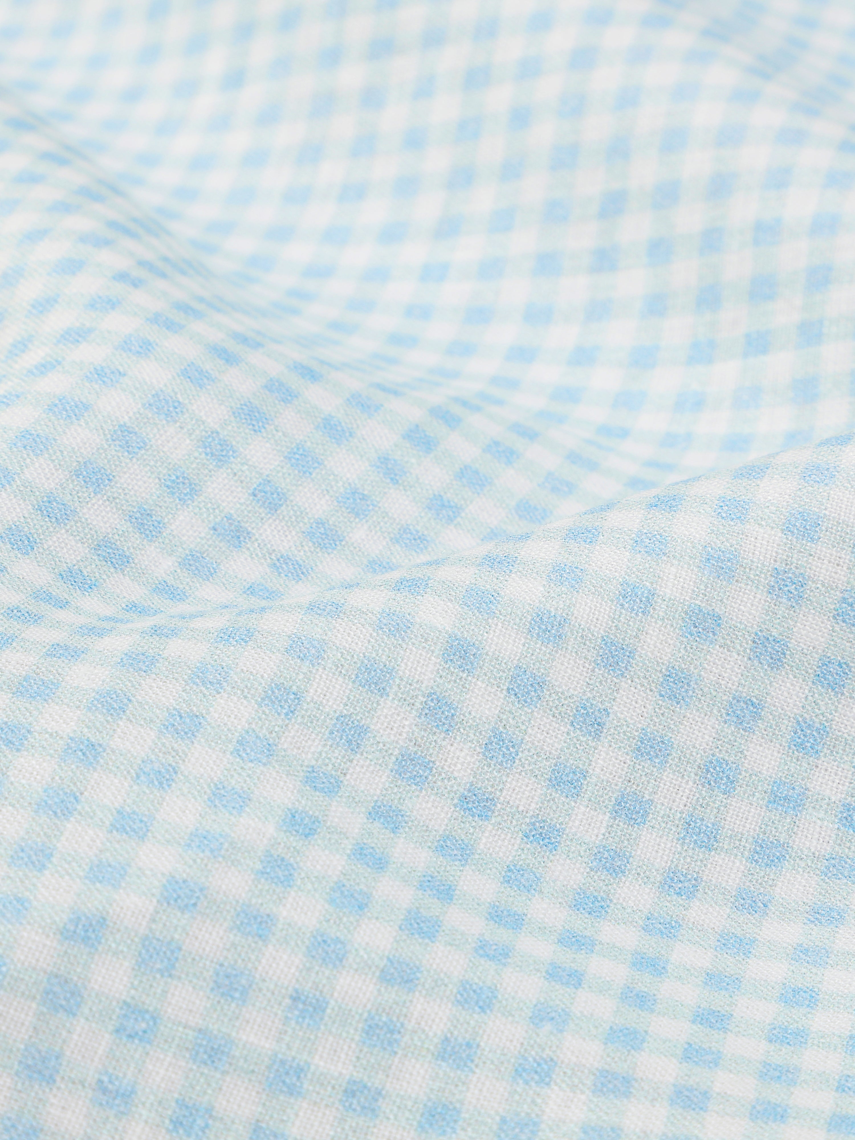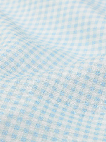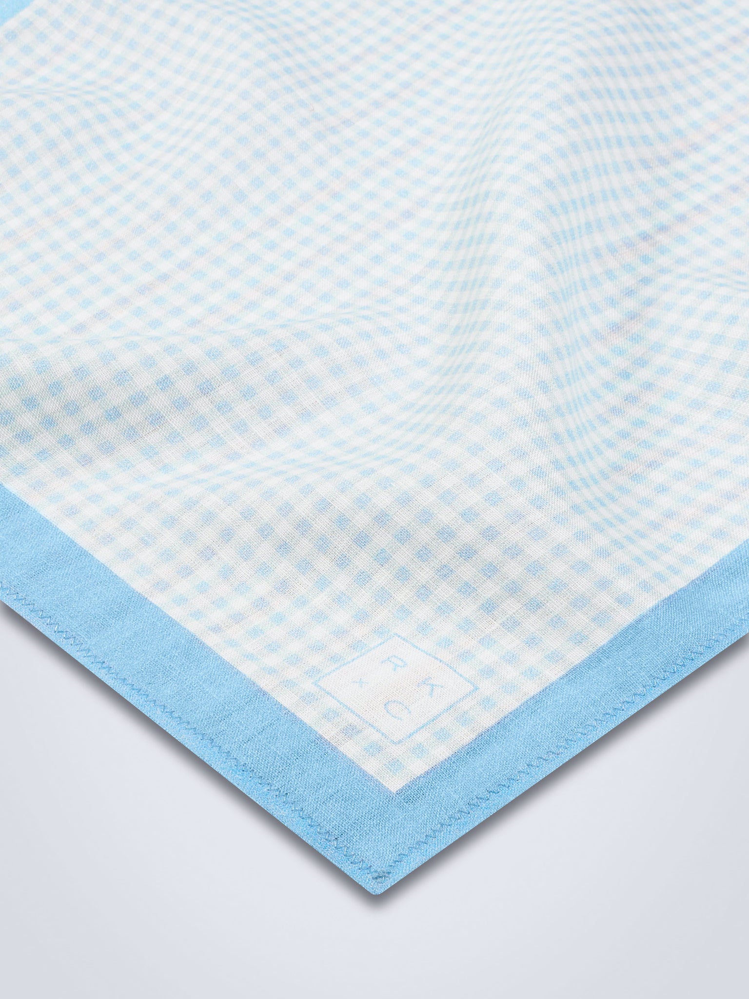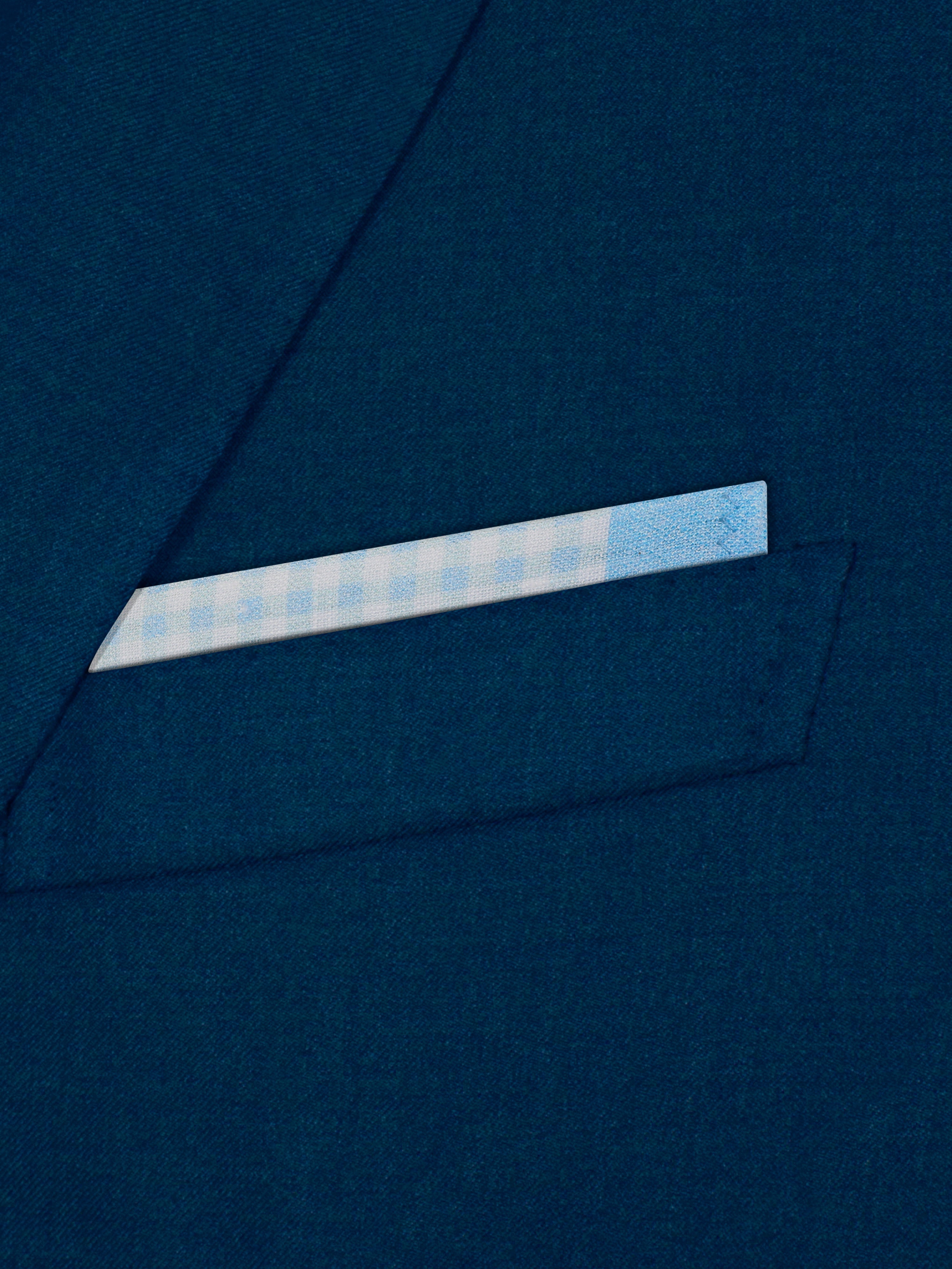 Perfect for when a “smart casual” dress code is the order of the day. This masculine plaid pattern in blue has a matching solid border and can be arranged to display only the checks, or also the solid edges. A sharp punctuation point to a smart jacket.