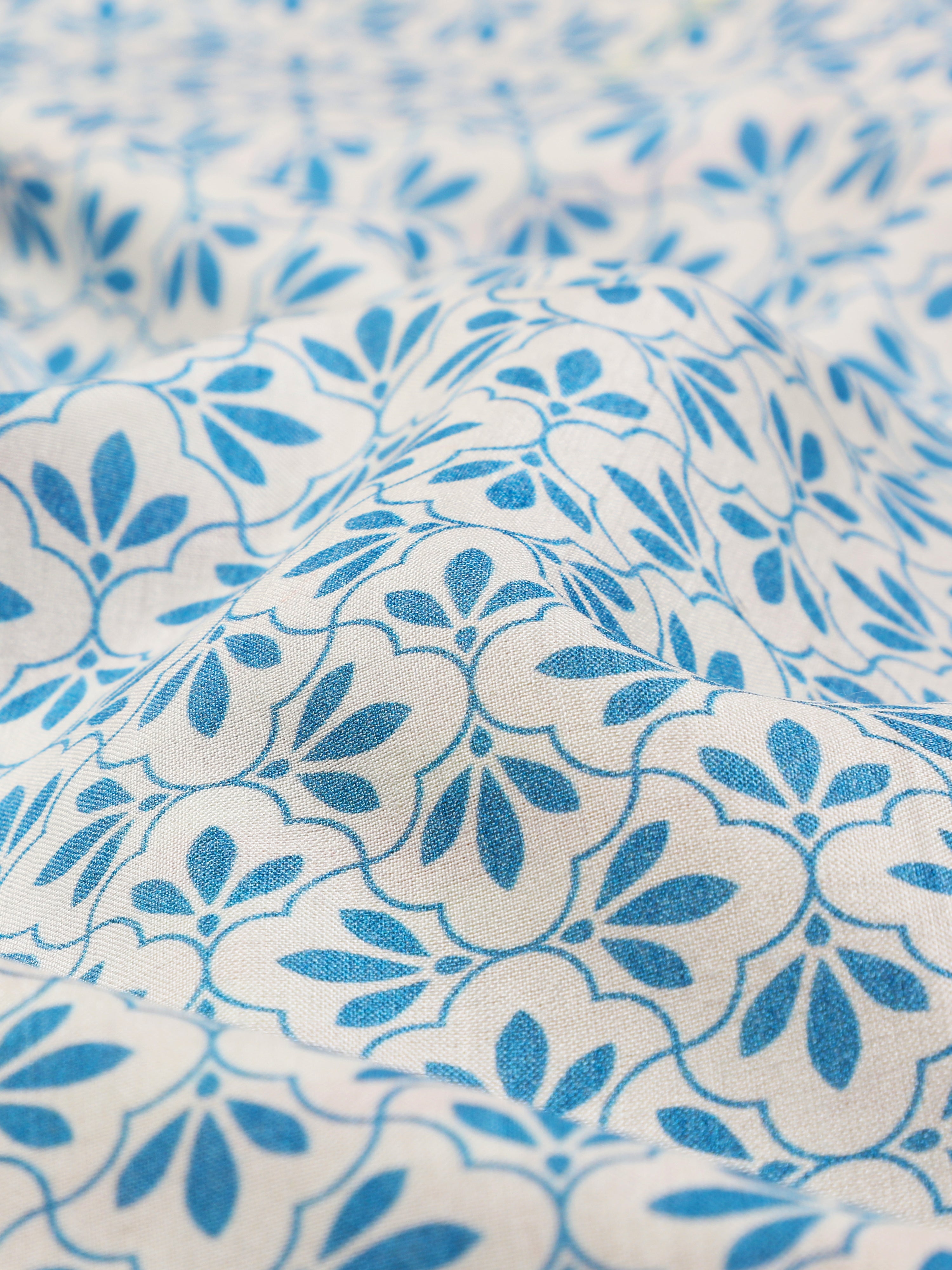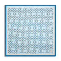 Blue lattice design with a matching solid border on an off-white background. Crafted of pure eri silk.- 100% Eri Silk