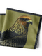 A portrait of a golden eagle—the majestic king of the sky—against an olive background with a charcoal border. Reproduced on pure eri silk from an original plate by the artist.